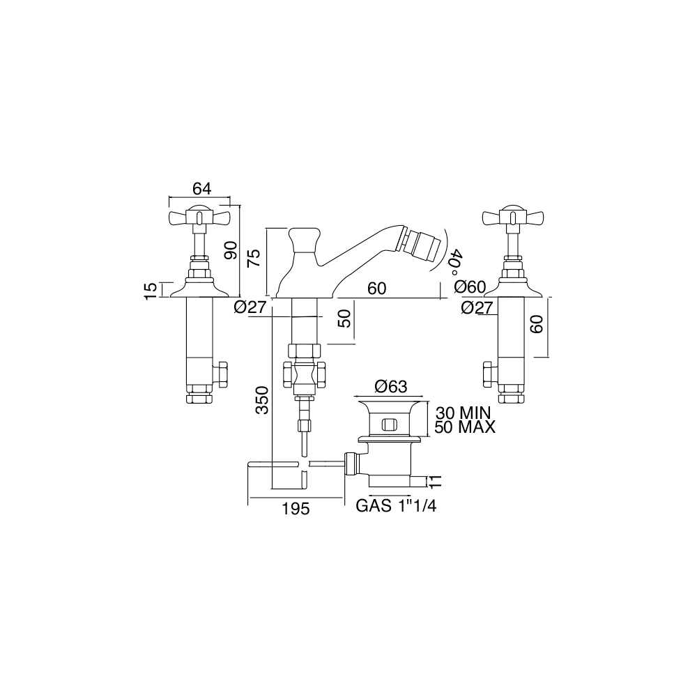3-hole vintage style bidet faucetĀ made in Italy by Katerina brass.