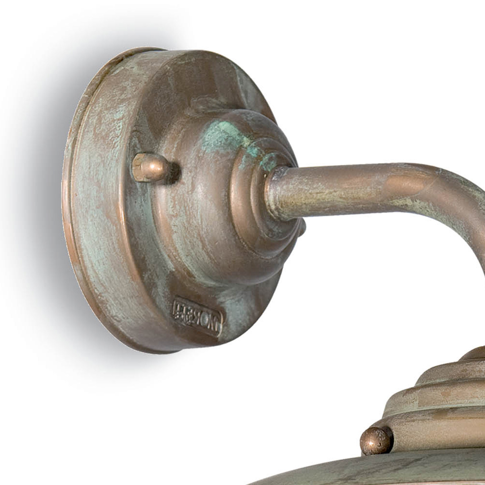 Authentic and timeless, this outdoor wall light evokes the charm of traditional lanterns, reinterpreted with an elegant twist. The handcrafted brass structure stands out for its antique finish , which enhances the materiality of the metal and lends a refined, lived-in look.