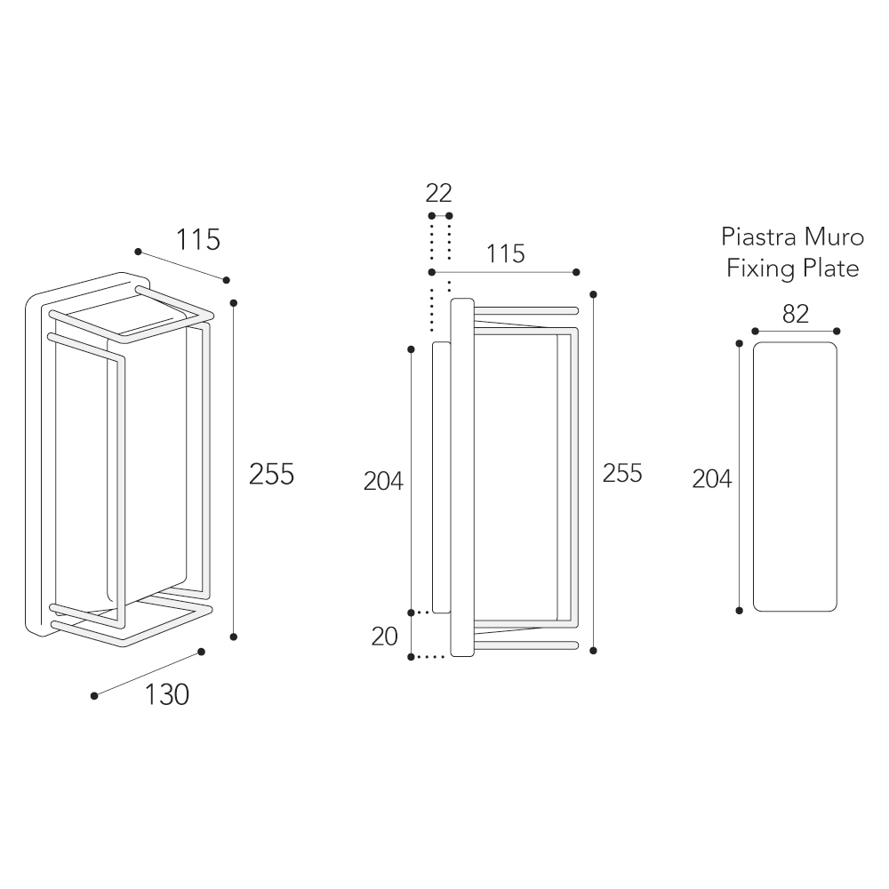 • Wall plate: 20.4 Ɨ 8.2 cm