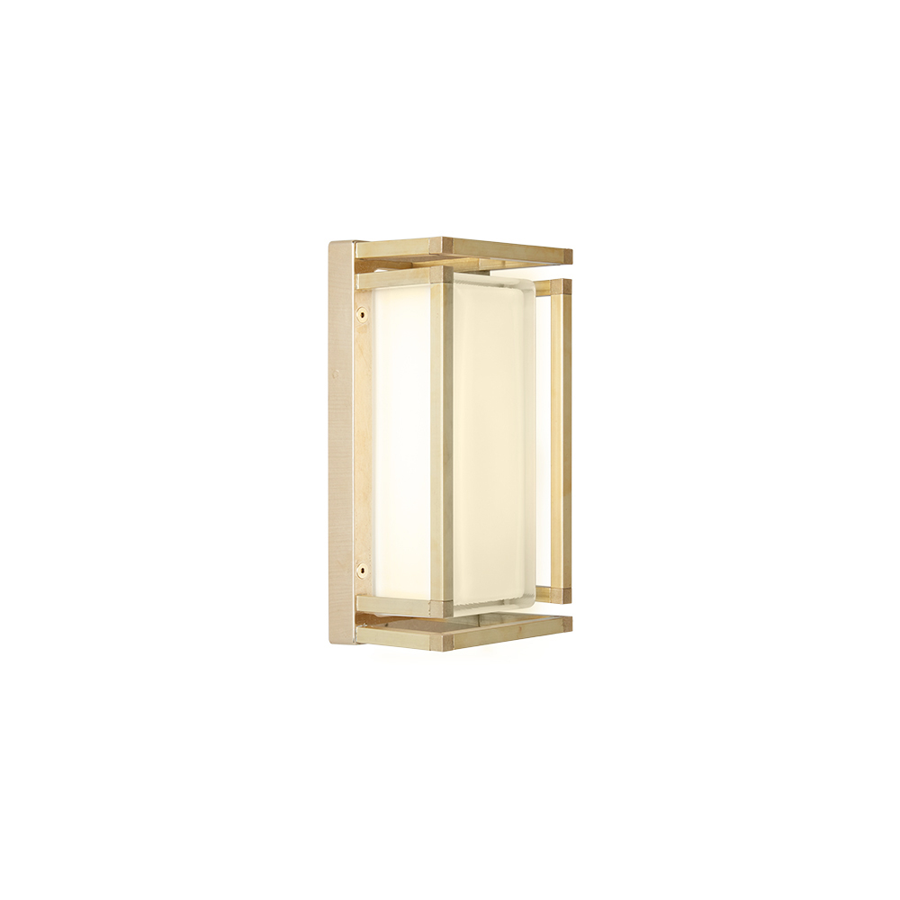 Simple and elegant, this handcrafted wall light is a refined lighting solution, designed to enhance modern walls and contemporary spaces. The die-cast brass structure, combined with a rectangular opal glass diffuser , creates a soft, even light, ideal for welcoming and functional lighting.