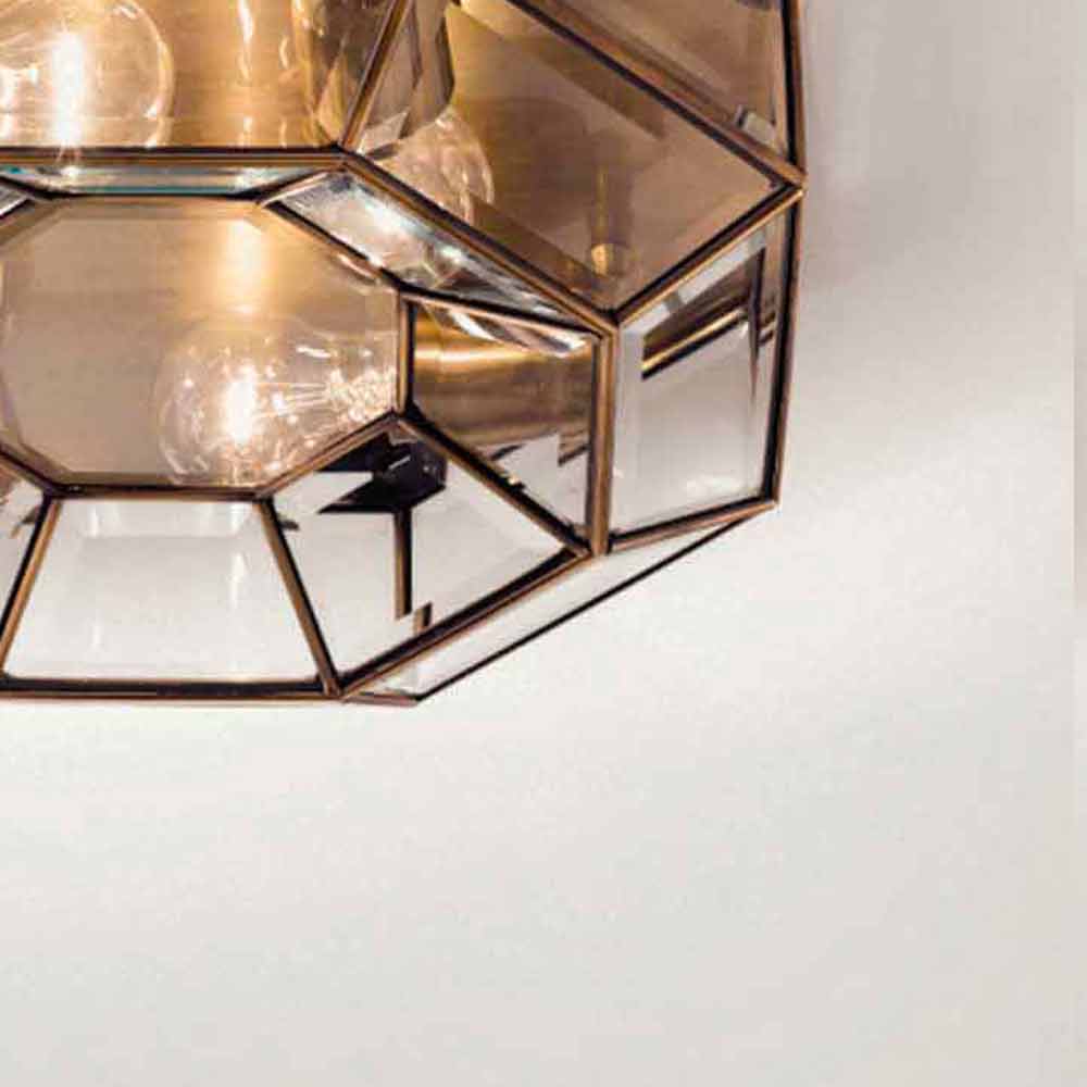 Ceiling lamp with 4 octagonal lights in brass and glass of handcrafted design made in Italy.