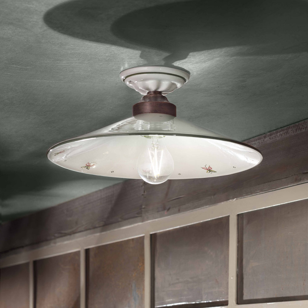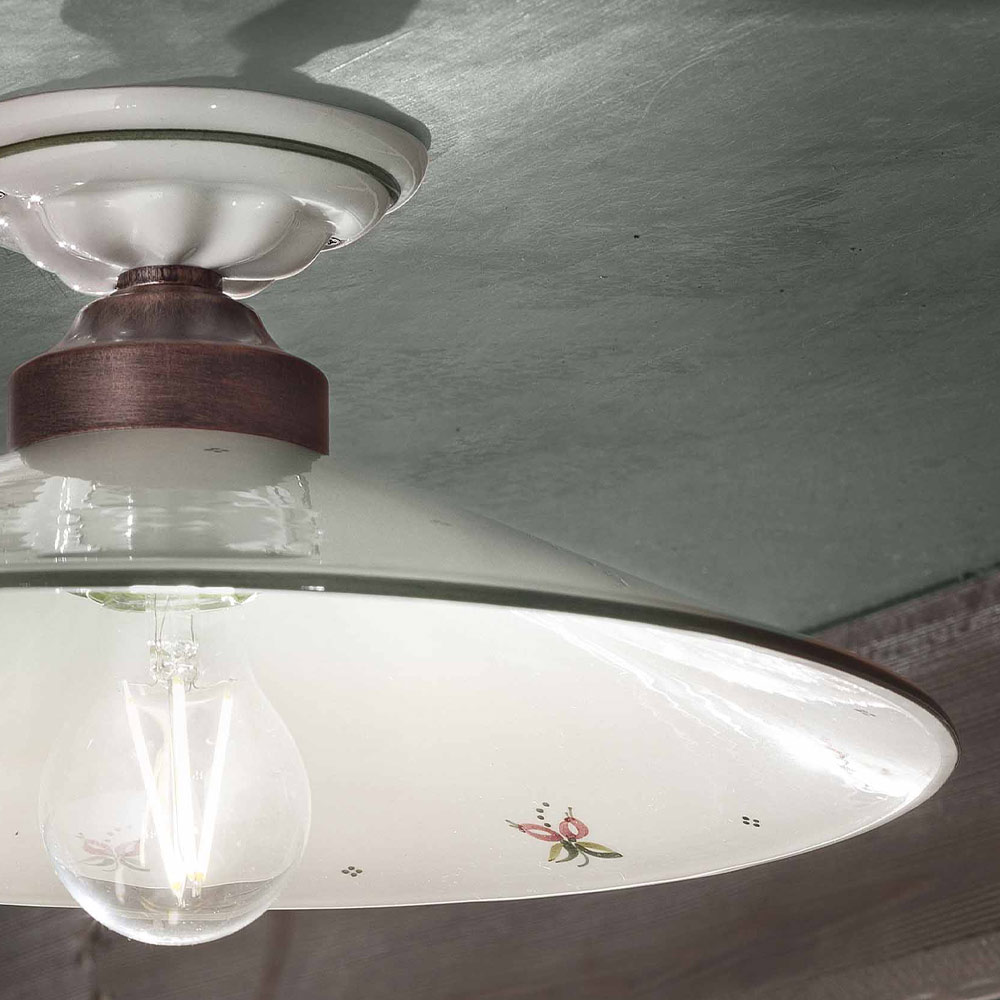 Vintage ceiling lamp in iron and hand-painted ceramic, 3 sizes made in Italy by Ferroluce.