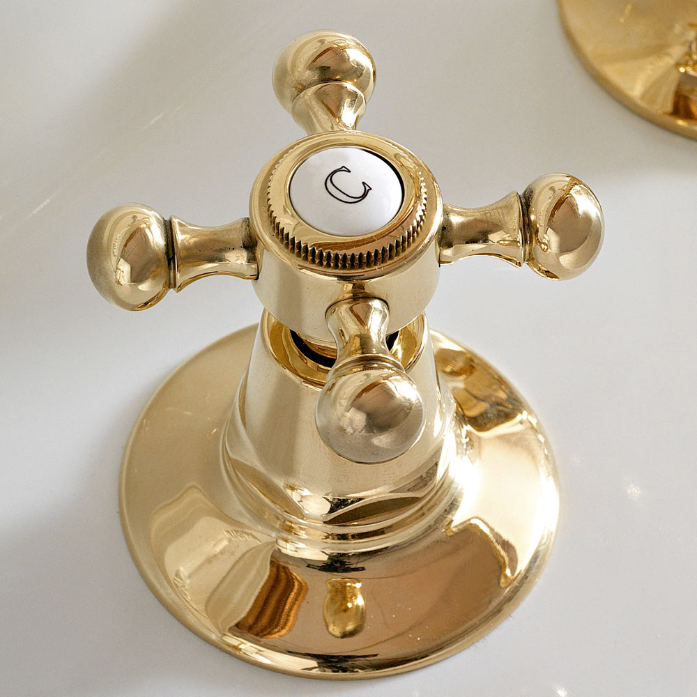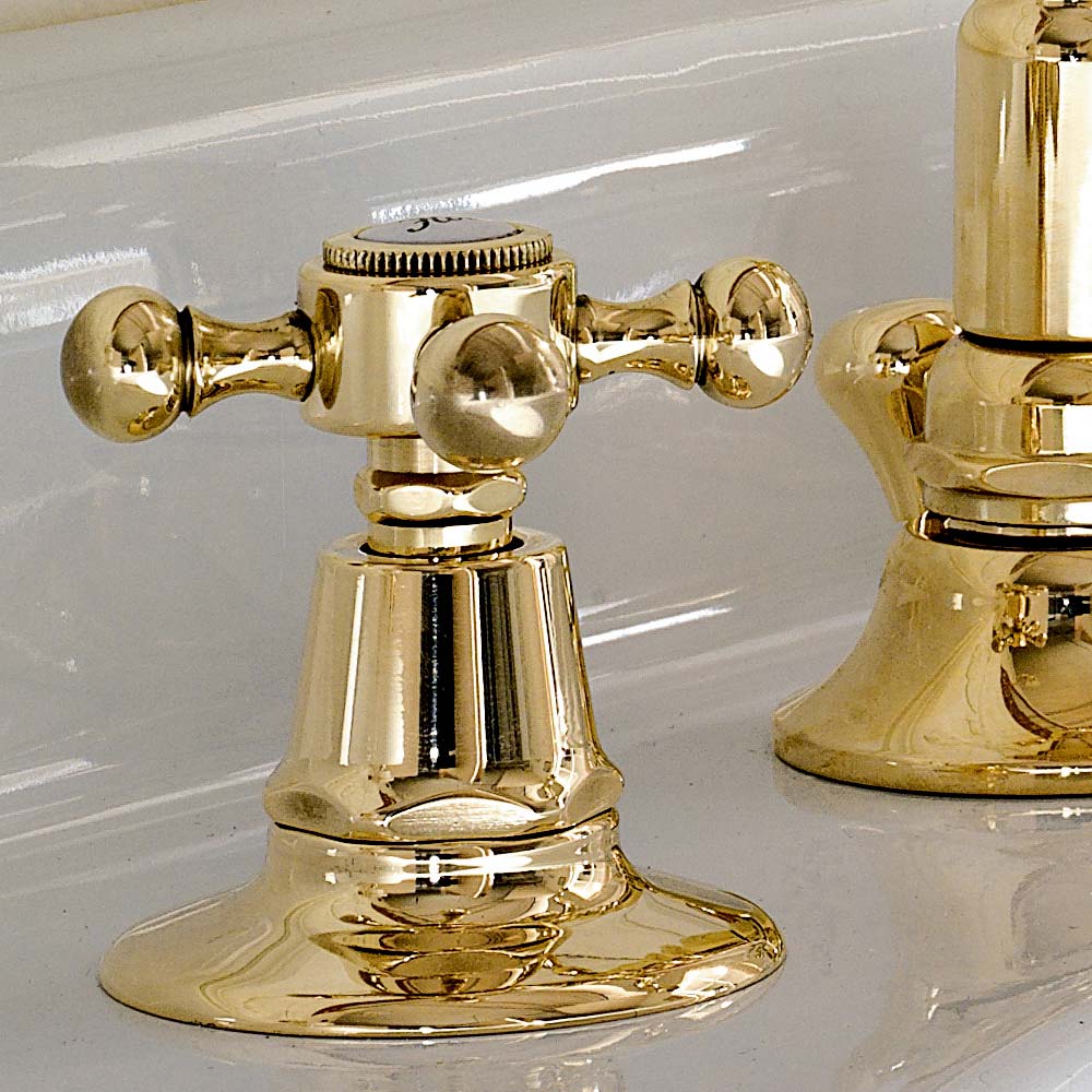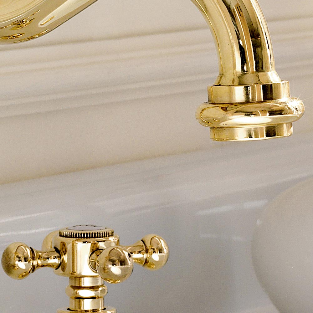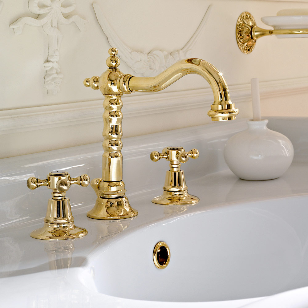 3-hole designer style washbasin faucet in brass Ursula, made in Italy.