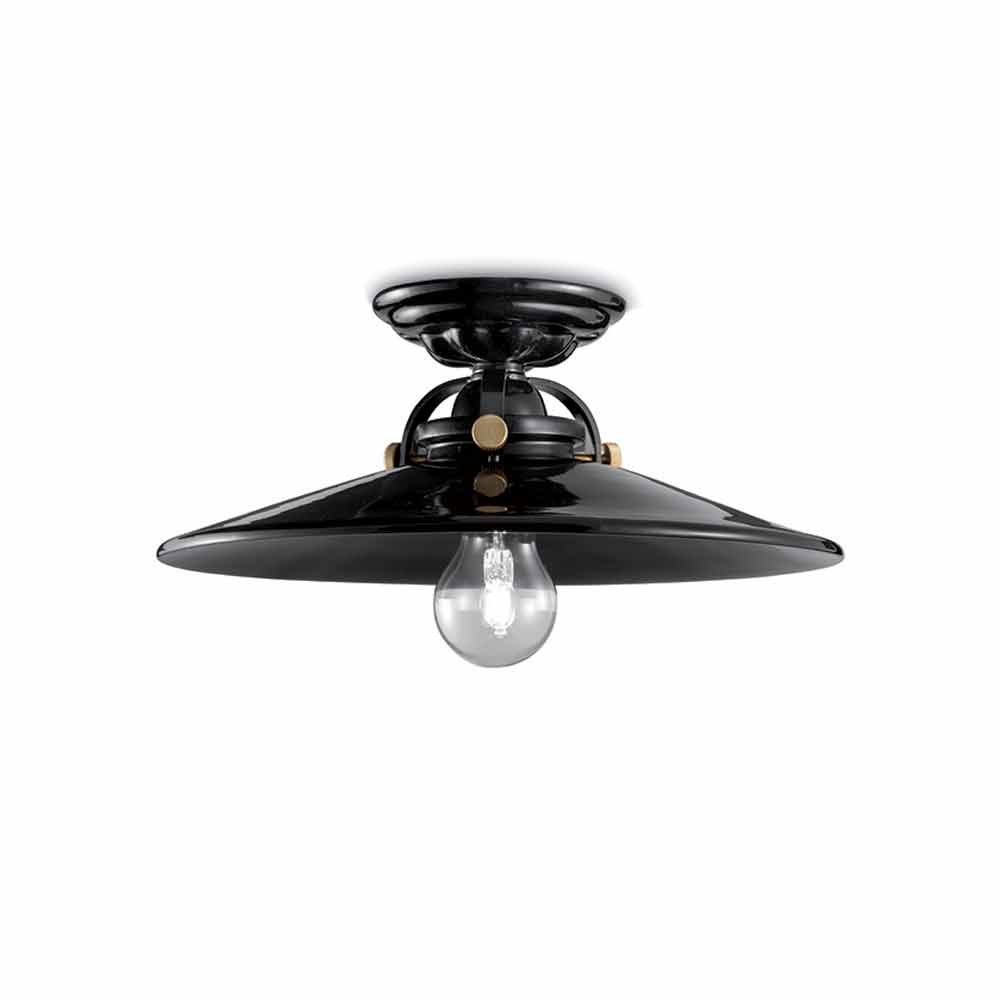 Vintage ceiling light in glossy ceramic and golden screws of Elsa design