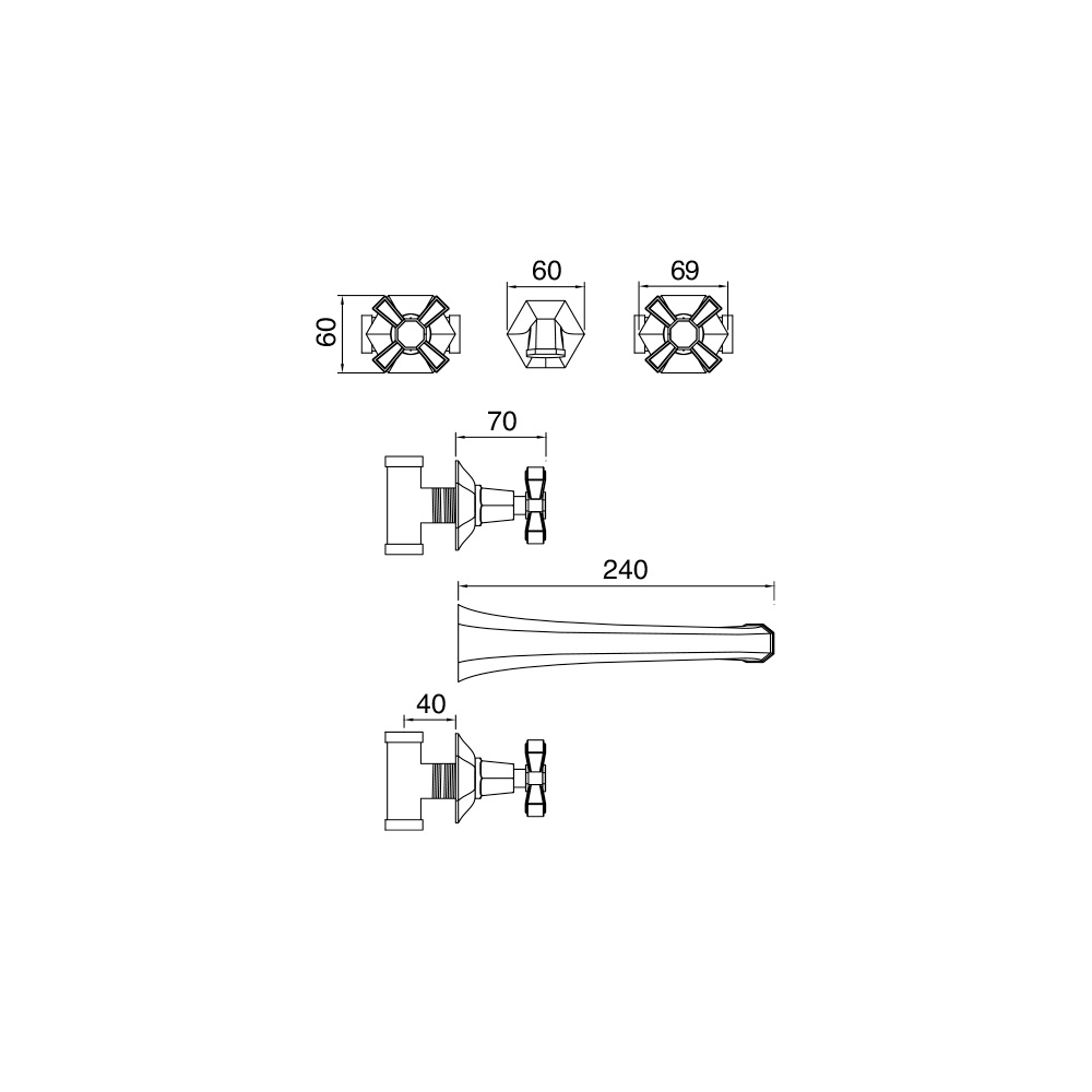 Silvana model brass wall-mounted sink or washbasin faucet, made in Italy.