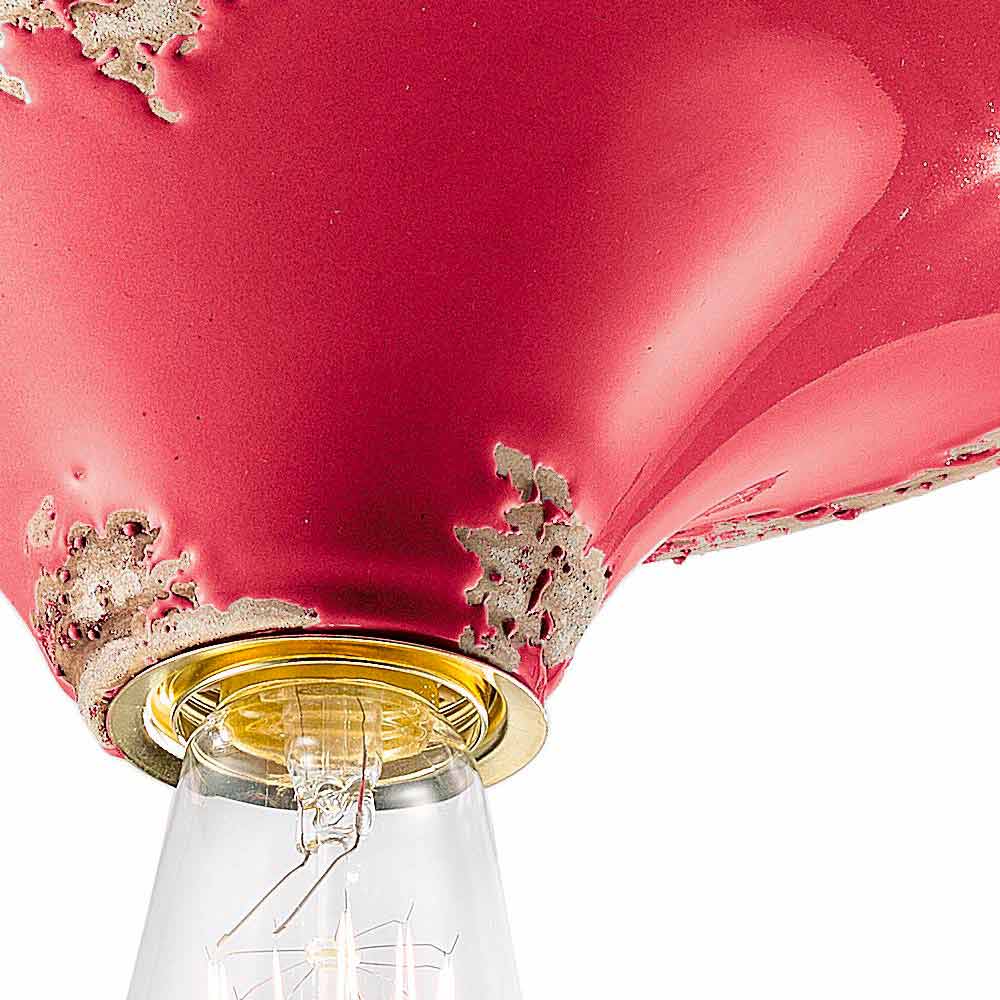 The peculiarity of this lamp lies in the processing of its external finish, decorated in such a way as if time had marked its path. The reproduction of the erosion of time combined with the glossy surfaces give that extra value to this ceiling light.