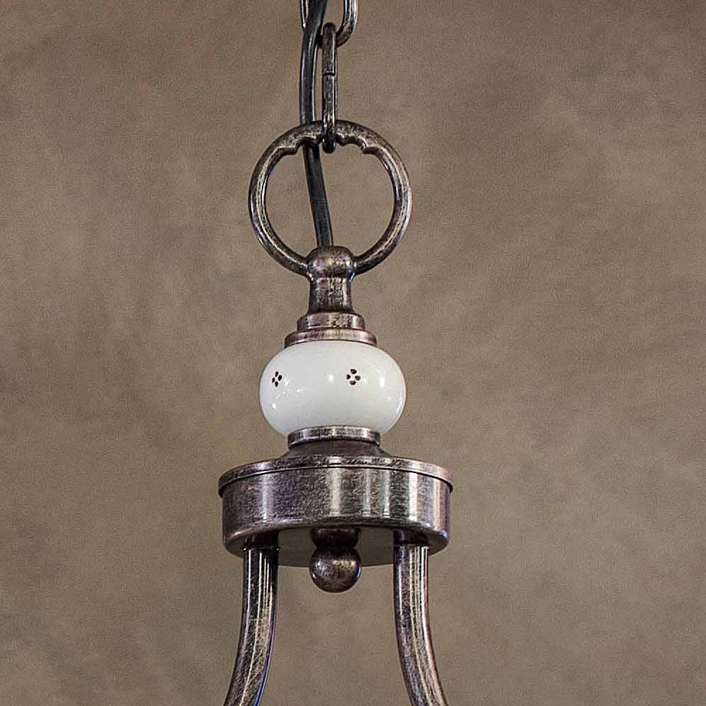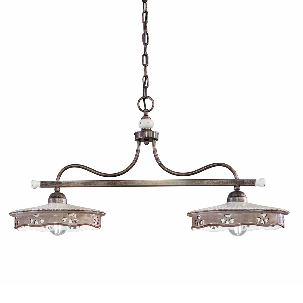 Suspension lamp with 2 lights in ceramic and iron, vintage craftsmanship made in Italy by Ferroluce.