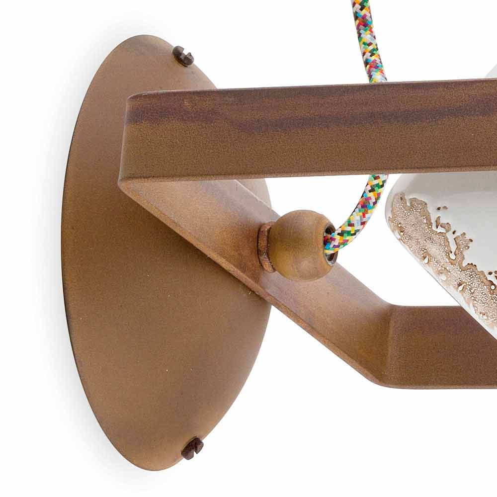 This beautiful wall lamp consists of an iron structure in a rust finish with a diffuser made of glossy ceramic, available in different colors.