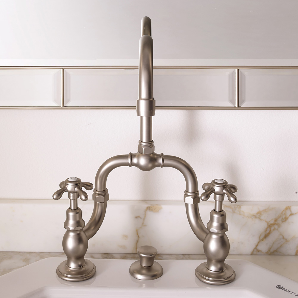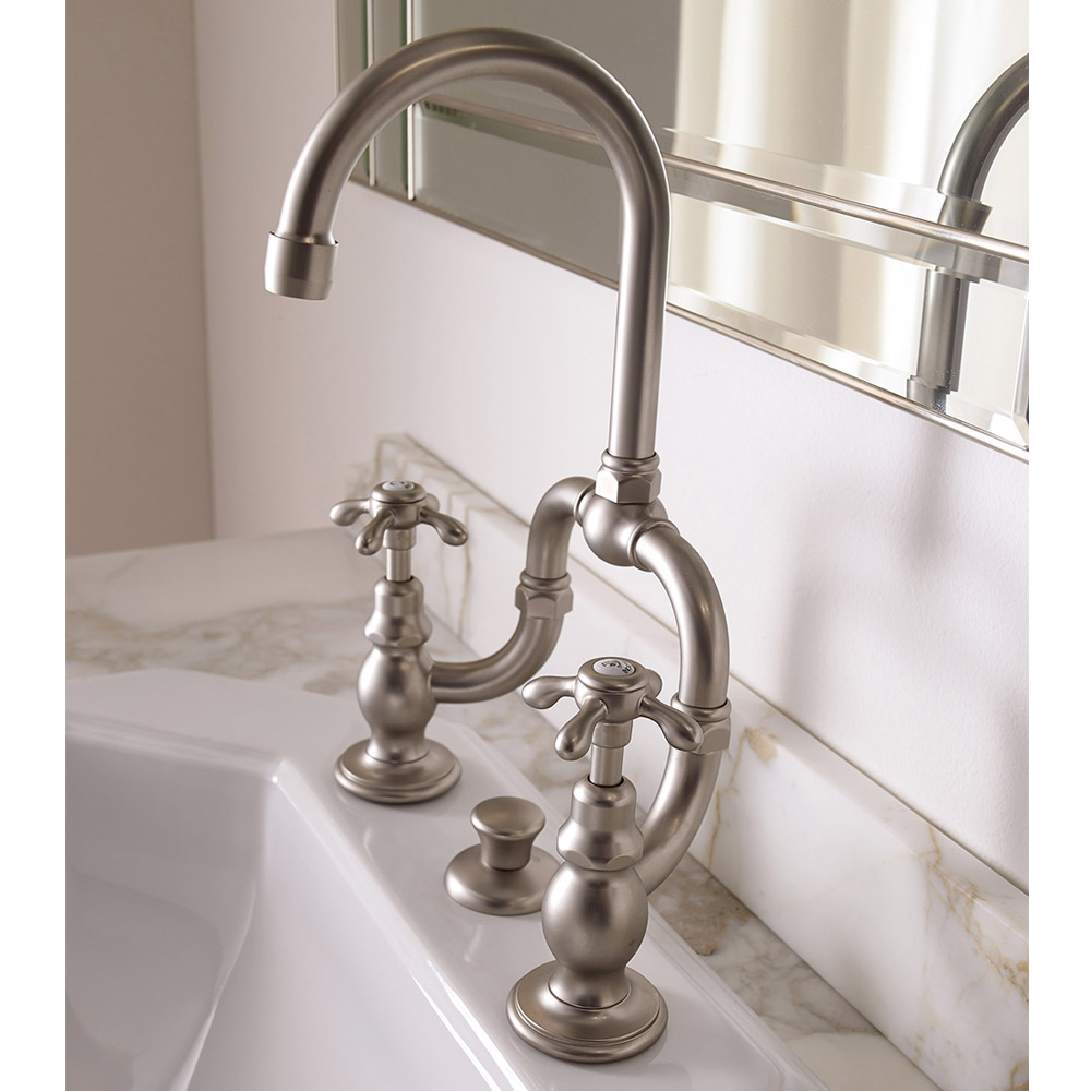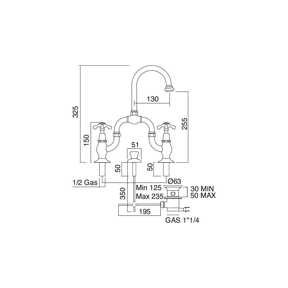 bridgedĀ basin mixer assembly 2-3 holes with drain, adjustable center distance and articulated spout.