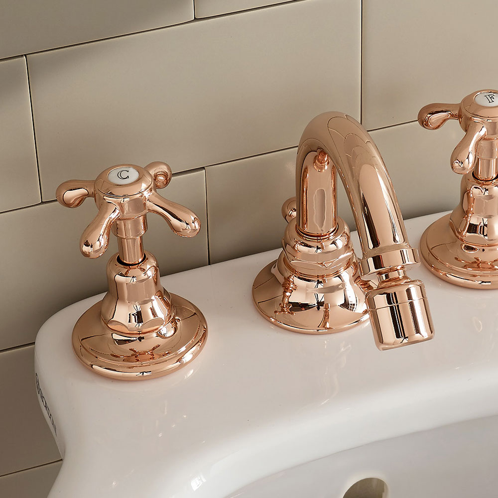 Brass 3-hole vintage style bidet faucet made in Italy, Klarisa.