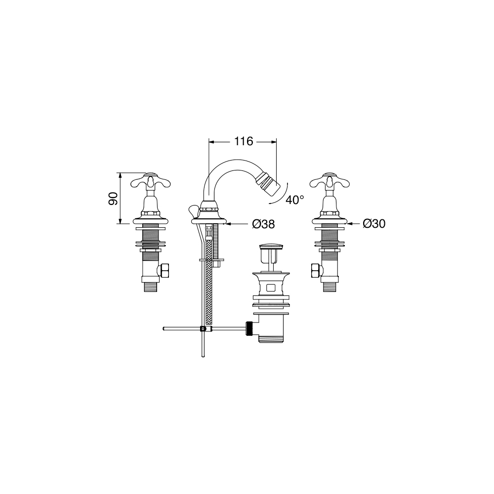 bidet faucetĀ 3-hole with drain.