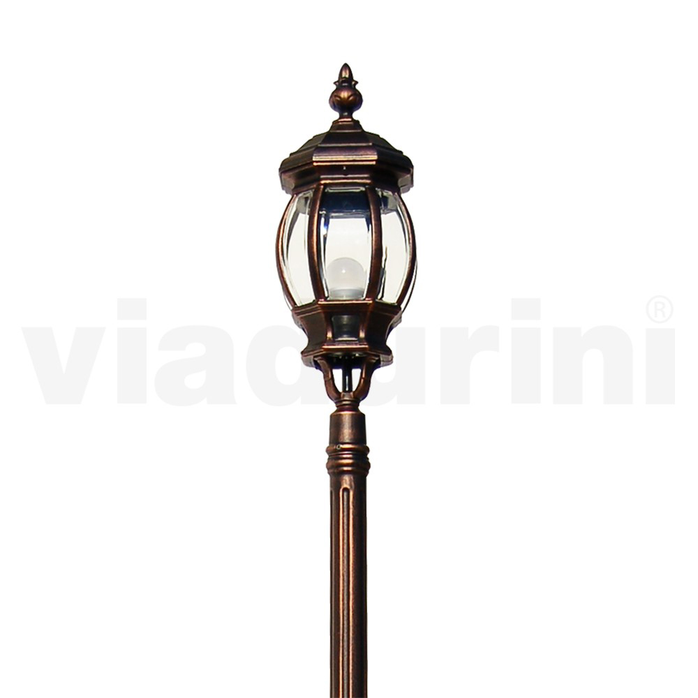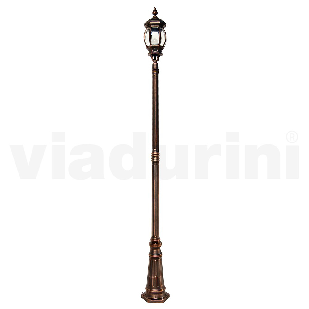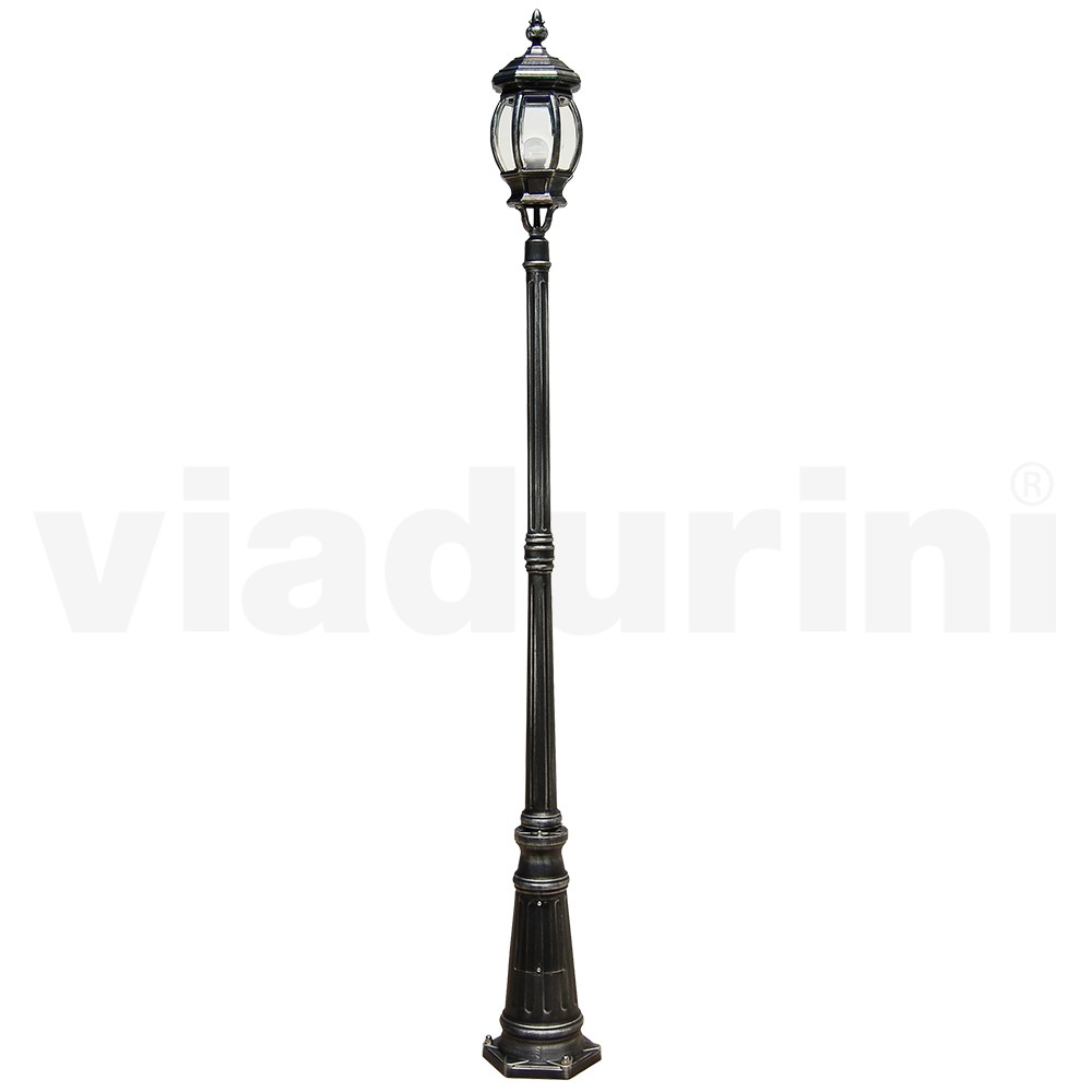 Lamppost made through 100% Made in Italy production with die-cast aluminum structure and transparent polycarbonate diffuser. Complete with stainless steel screws. Personality and elegance are the elements that distinguish this elegant furnishing accessory for outdoor spaces capable of enriching every stylistic situation making it unique through a refined and classy touch . Ideal for both domestic and contract outdoor environments such as gardens, courtyards, porches, avenues and walkways.