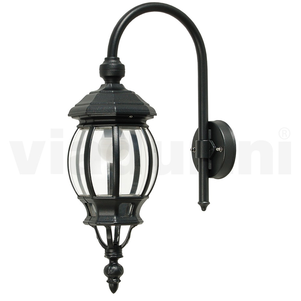 Outdoor wall lamp in die-cast aluminum, anthracite gray finish with transparent polycarbonate diffuser made through 100% Made in Italy production . Complete with stainless steel screws. An elegant product with a vintage style capable of characterizing any outdoor space thanks to its strong personality and the wonderful details that enrich its aesthetics for an exclusive and refined result . Ideal for outdoor environments such as gardens, avenues, walkways or outdoor contract spaces such as bars and restaurants.
