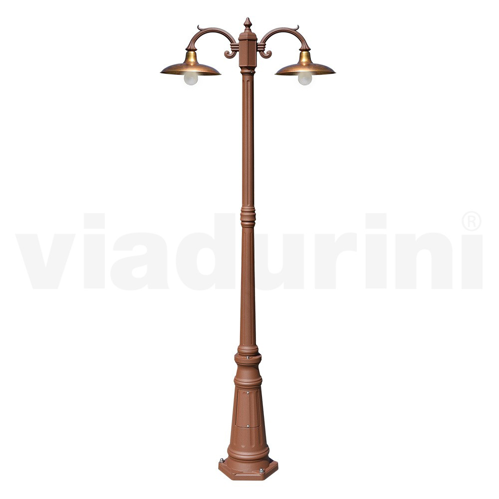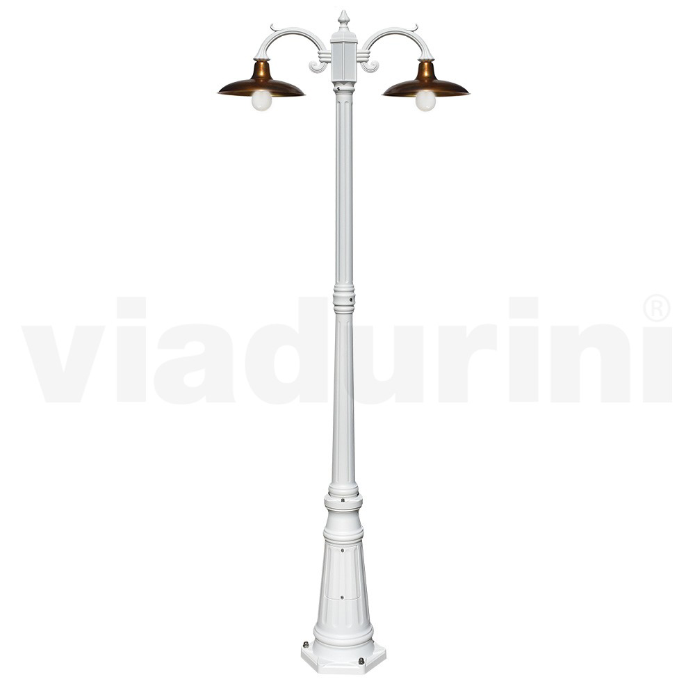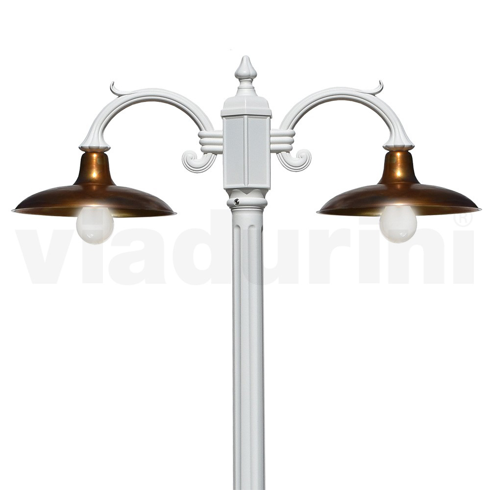2-light vintage style aluminum street lamp with brass diffuser Made in Italy.