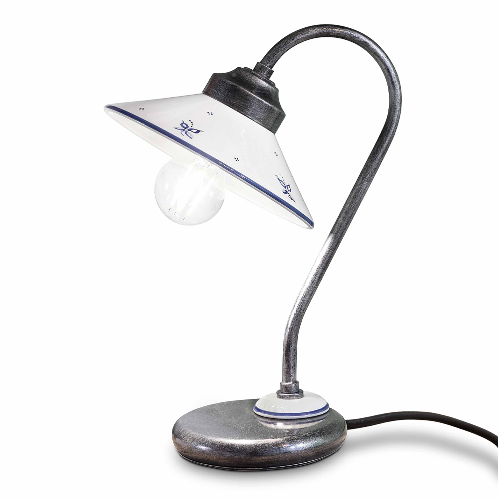 Vintage table lamp in iron and hand-painted ceramic made in Italy by Ferroluce.