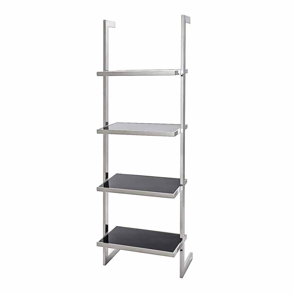 Tafre is a bookcase made of steel with practical shelves in glossy black glass on which to store books, CDs and various objects. Thanks to its simple and linear design it can be used to furnish any environment, from the living area, to the sleeping area, to the office.