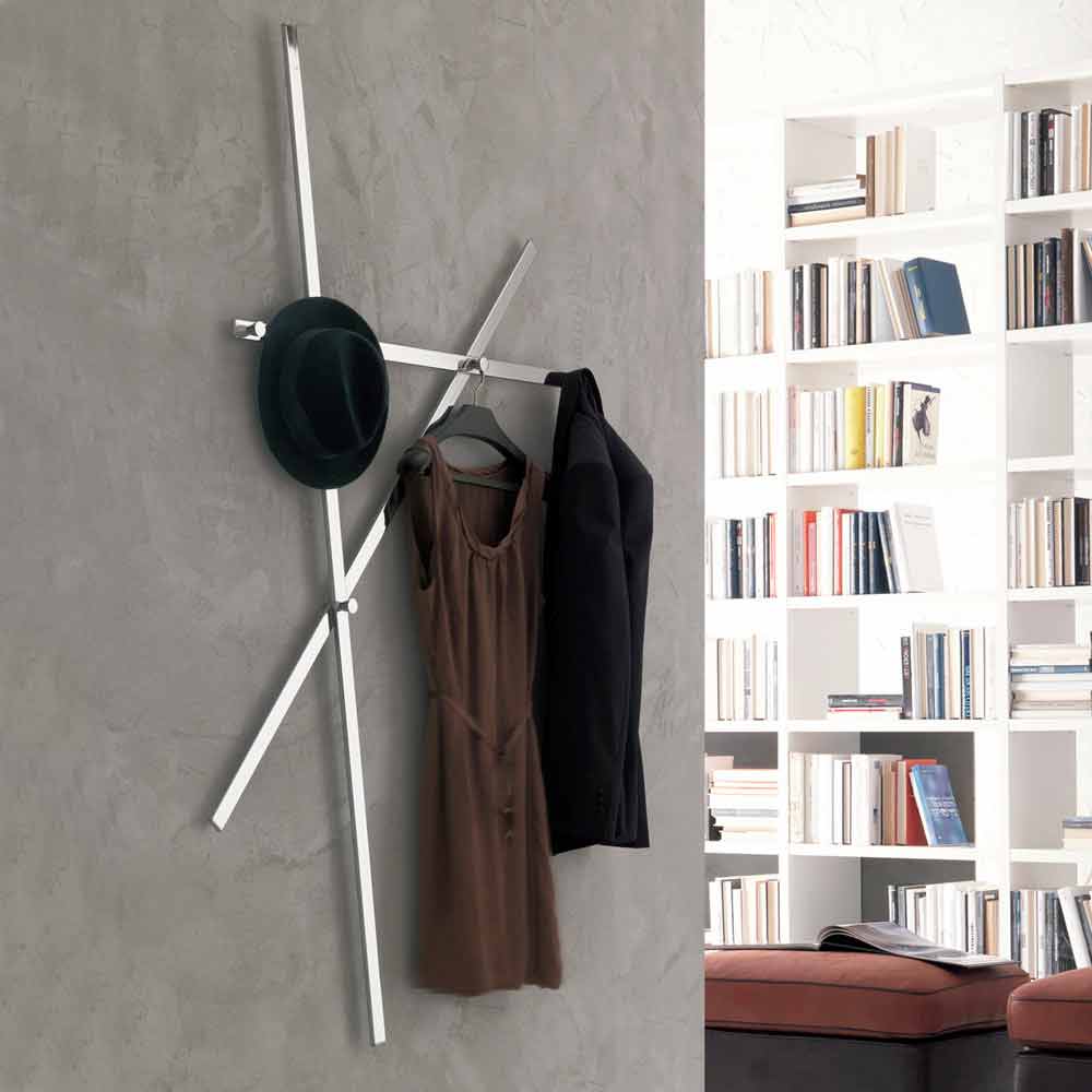 Modern coat hanger Ā  wall lamp made in Italy with painted metal structure equipped with 5 matching hooks. A stylized design characterized by simple lines that plays on the use of geometric shapes to enrich the aesthetics of the product with personality. The available finishes make it a particularly versatile furnishing solution, therefore adaptable to any room in the house with a modern taste in which it completes the furniture by creating a wonderful harmony of styles. The coat hanger is a fundamental piece of furniture in every home and must meet both functionality and design requirements. Aesthetics is in fact important as it creates a harmony with the surrounding surrounding elements and provides a practical and resistant solution on which to place jackets, coats and bags on returning home. This hanger embodies these fundamental characteristics, proving to be a perfect choice, capable of satisfying any request in the most exclusive way.