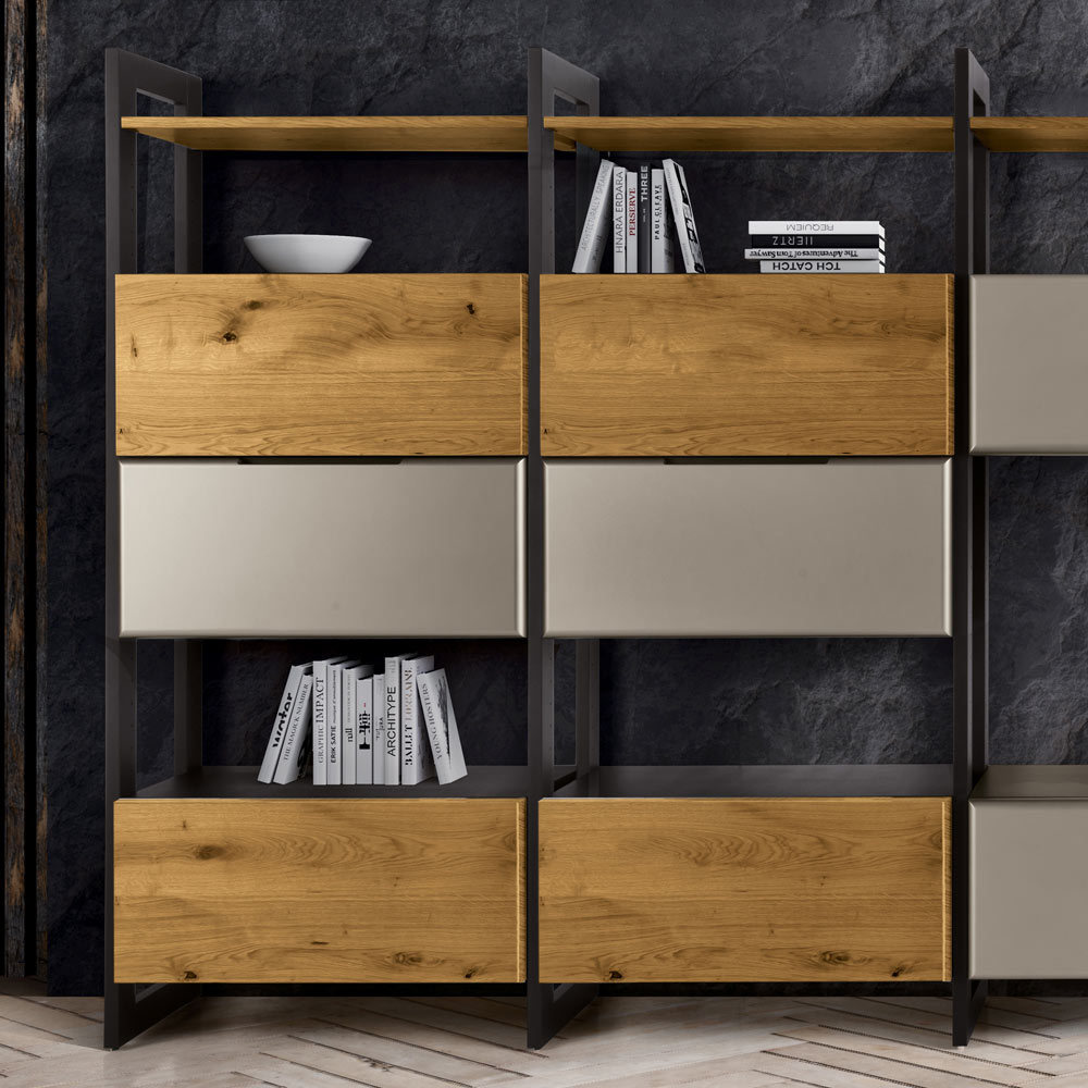 Wall composition in MDF and oak-plated blockboard Made in Italy - Marit