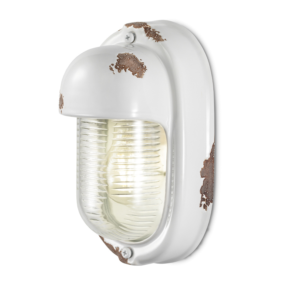 This vertical design wall lamp is entirely handmade in metal and ceramic , to highlight the skill and manual skills of the craftsmen in a craftsmanship with attention to the smallest details.