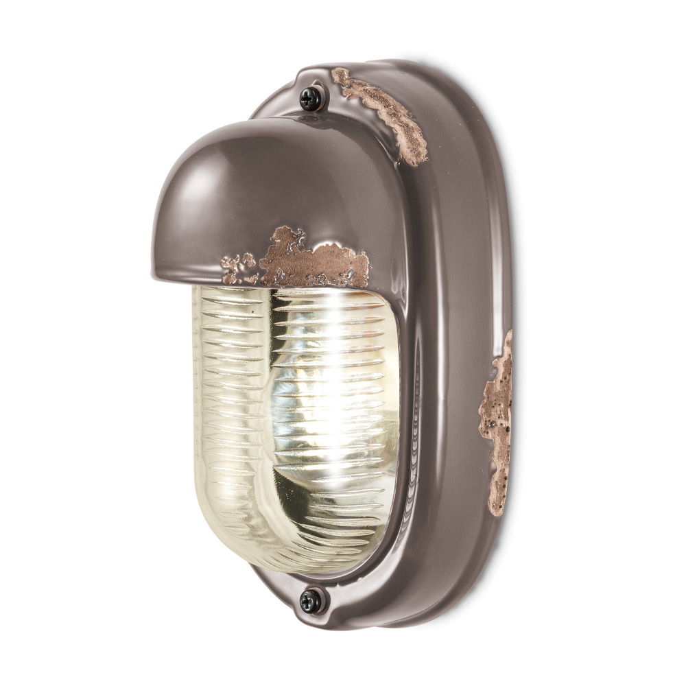 Vertical industrial-style handmade ceramic and metal wall lamp made in Italy by Ferroluce.