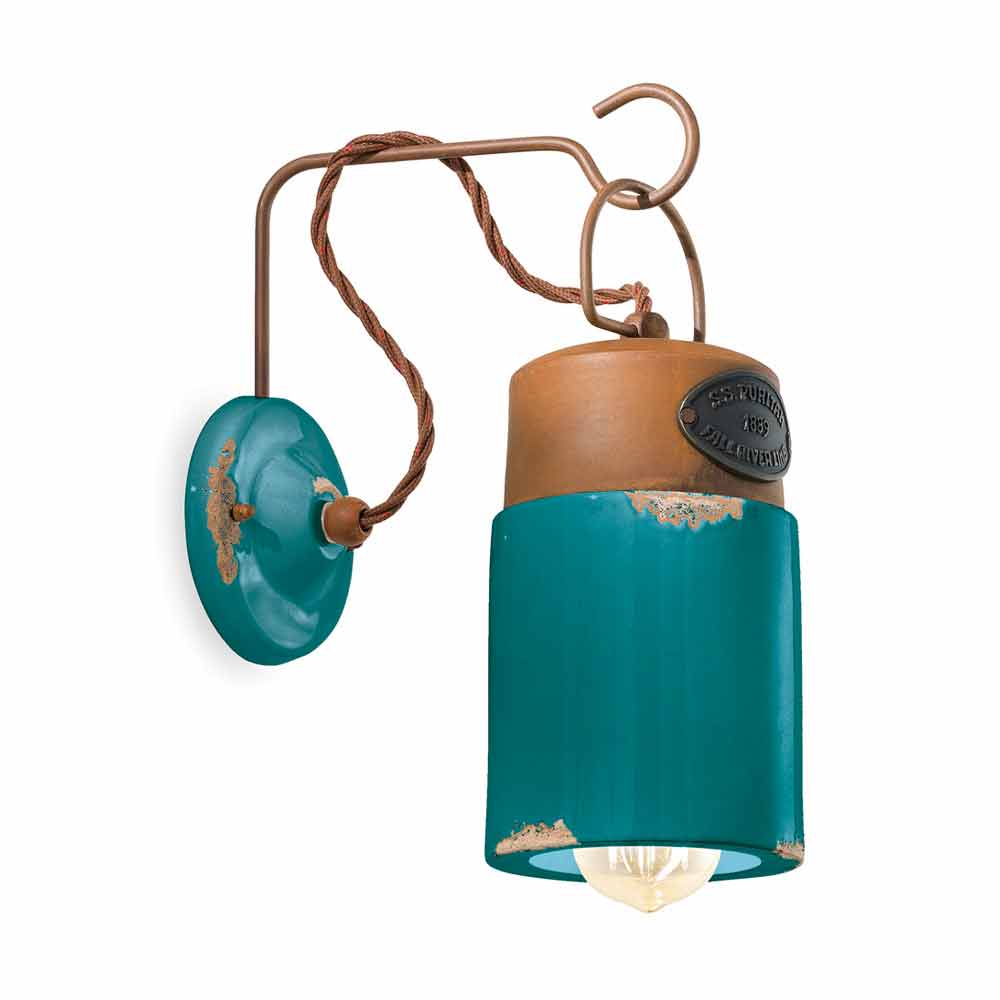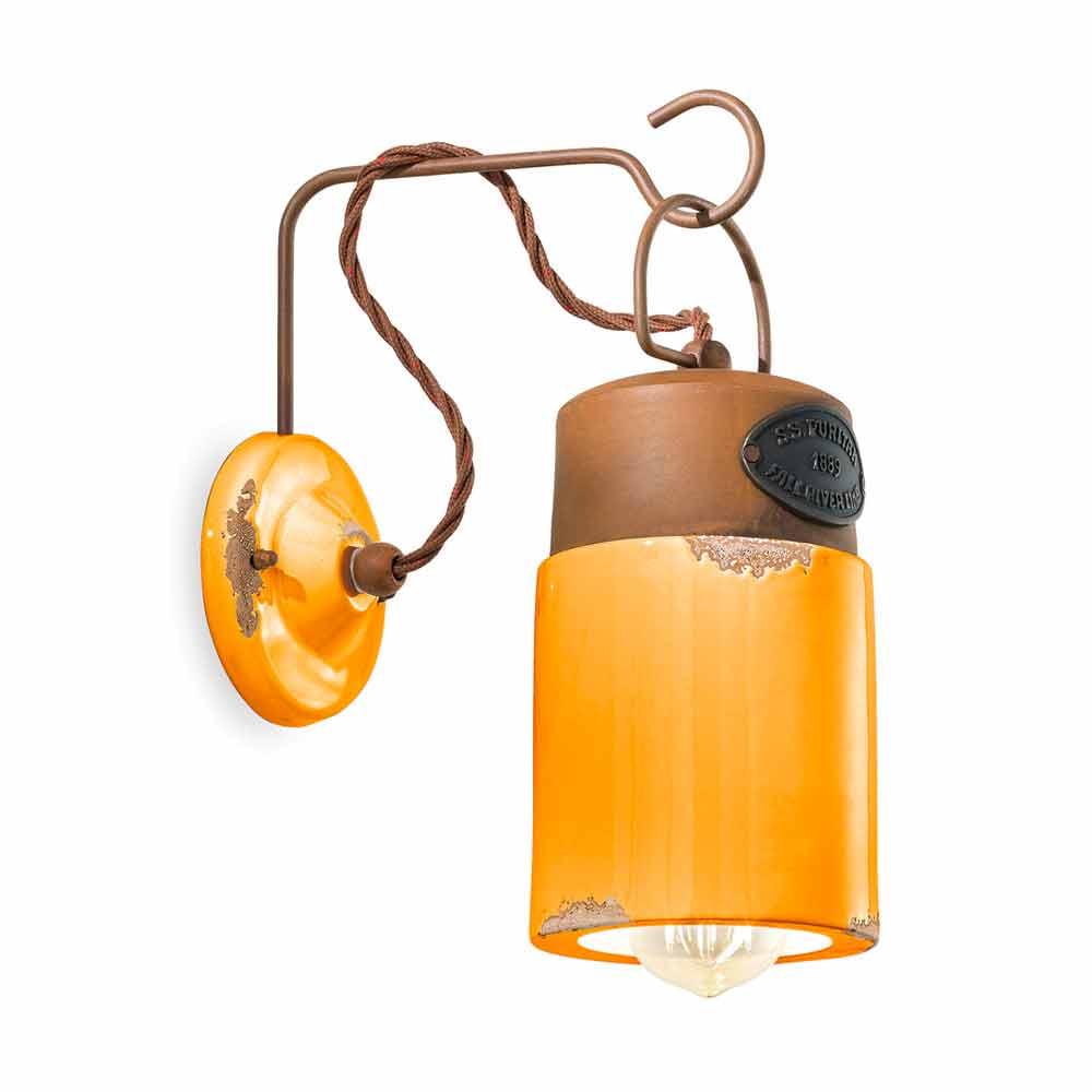 This beautiful wall lamp consists of an iron structure in a rust finish with a diffuser made of glossy ceramic, available in different colors.