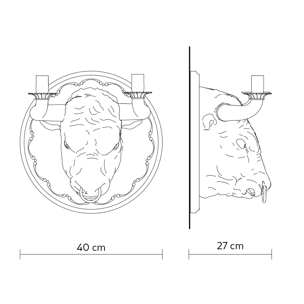 Wall Lamp with 2 Lights in Ceramic Design in the Shape of a Bull - Marrena