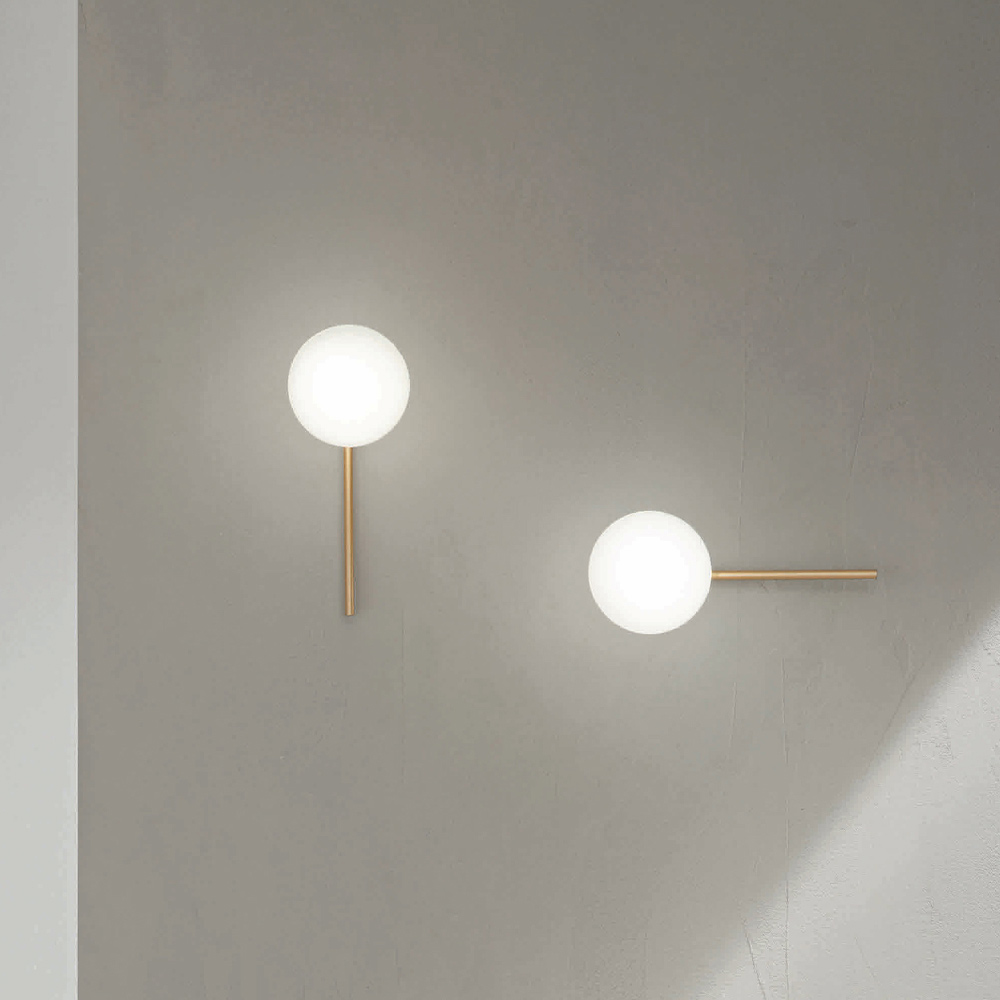 Wall light entirely produced in Italy made of painted metal and gold finish blown glass with LED light.