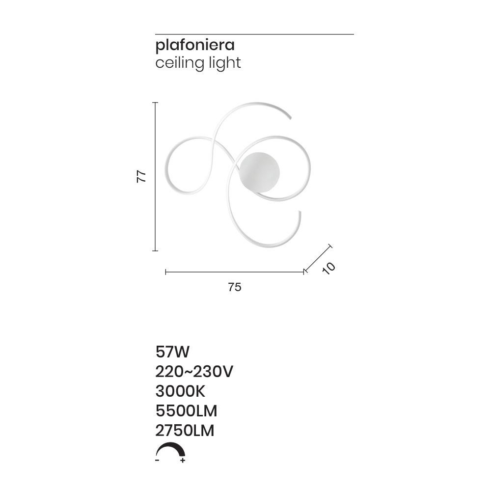 strong contemporary personality and, thanks to the dimmable power driver positioned inside the central plate, allows you to adjust the luminous flux for a