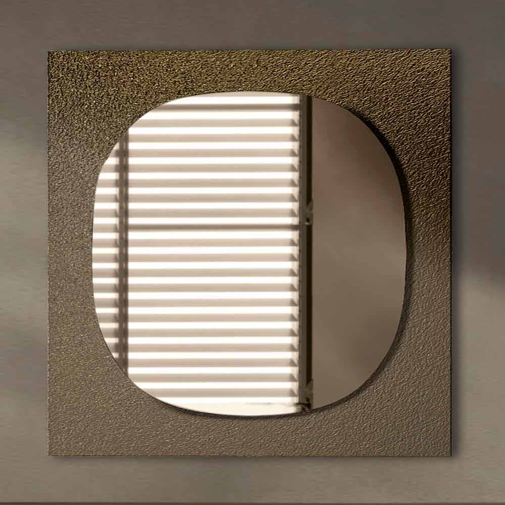 Wall mirror entirely made in Italy with bronze finish forged glass frame and superimposed oval mirror also in bronze finish. A design object conceived and conceived to enrich the furnishing of one's home spaces with all the value and quality of true Made in Italy , thus giving life to an exclusive and high-quality furnishing accessory . The use of different textures underlines its uniqueness and enriches the mirror with personality and elegance for an original result that comes from concepts of creativity and innovation thanks to an experimentation of materials and aesthetics that does not set limits.