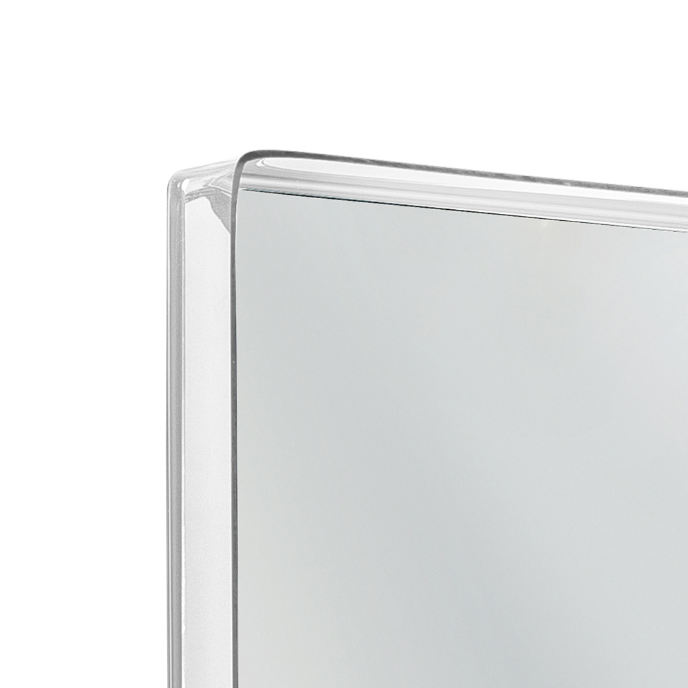 This wall mirror is characterized by the important frame that also acts as a shelf in PMMA plexiglass from 100% virgin polymer designed to allow the support of bathroom objects, plants or candles.
