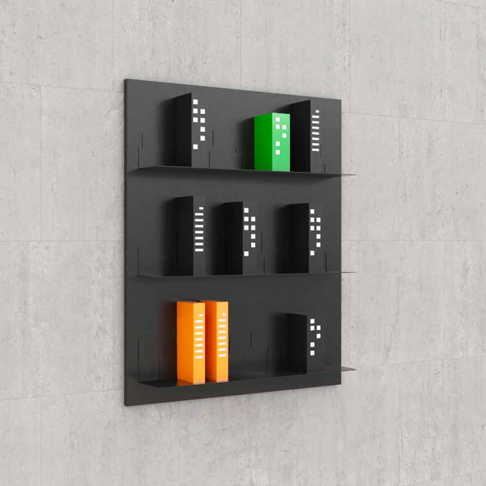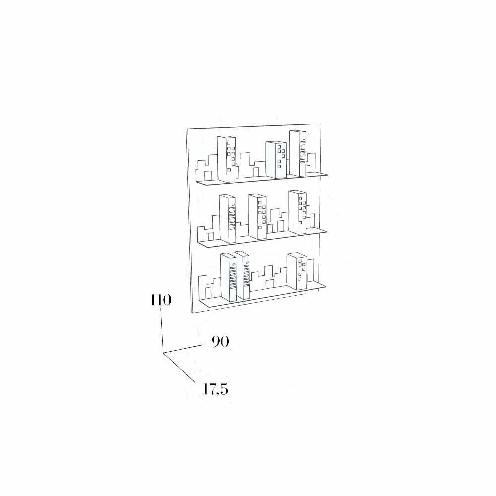 Like a painting hung on the wall, Skyline reproduces the look of a modern metropolis. Its skyscrapers divide the three levels and can be used as bookends. An original and functional idea to decorate your house and your office.