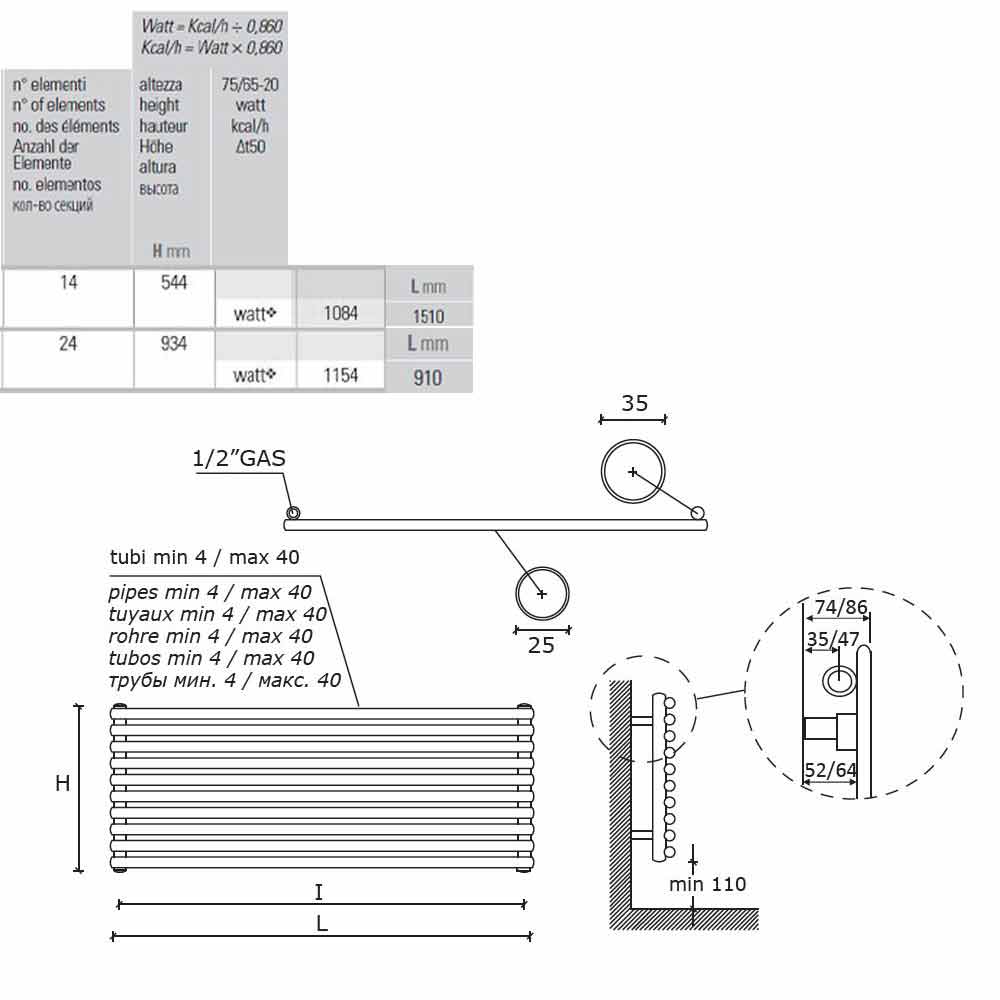 It is a carbon steel radiator suitable for contemporary environments, made entirely in Italy , the value of the radiator is determined by values such as total quality, service of the highest level, research of an always innovative but functional design and respect for the environment. not only in developing low environmental impact products but also in the production phase.