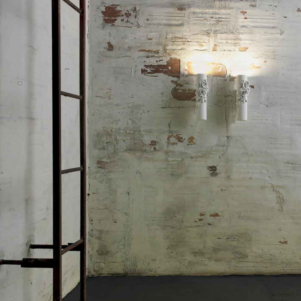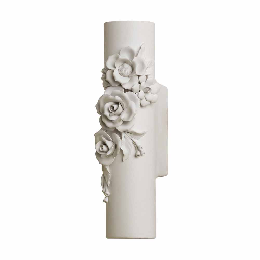 The simple ceramic cylinder is wrapped in a whirlwind of flowers that is highlighted by the purity of the stylistic lines and the material. There are no excesses, the perfectly balanced design can thus be inserted in various contexts , from the most modern for a touch of pure elegance, to the most classic and industrial ones, for a contemporary atmosphere and a contrast that excites.