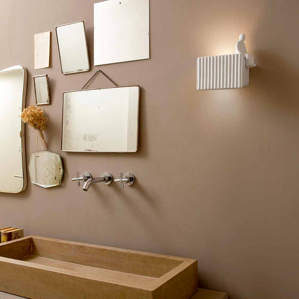 This original and singular wall lamp represents the movement that in recent years has enjoyed a successful media phenomenon and which sees the umarell , or the typical elderly pensioner looking at construction sites or public works, as the protagonist. It is a concept that ironically came to life in Italy and then spread to the rest of the world in order to stimulate and improve production for all office workers and computer workers.