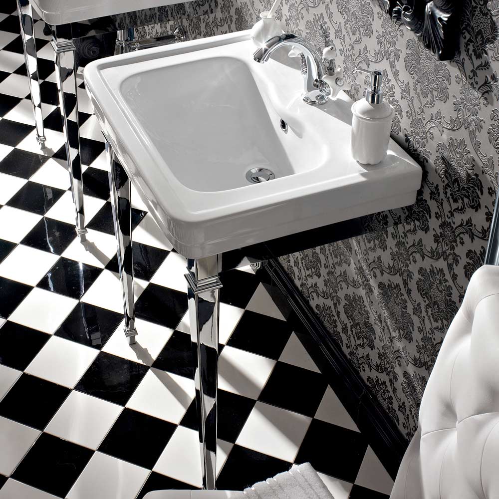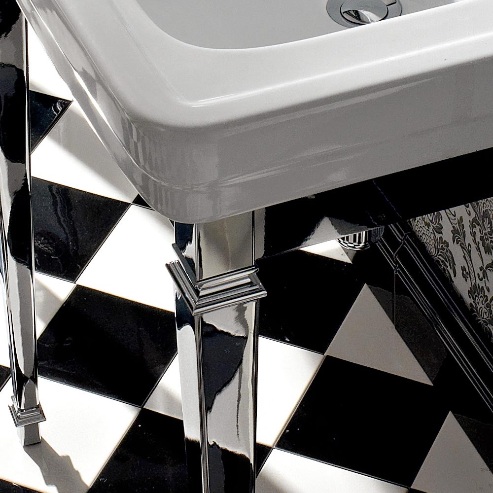 The style of this console sink can be defined as neoclassical: design and retro lines are combined with materials with a more modern character, such as metal.