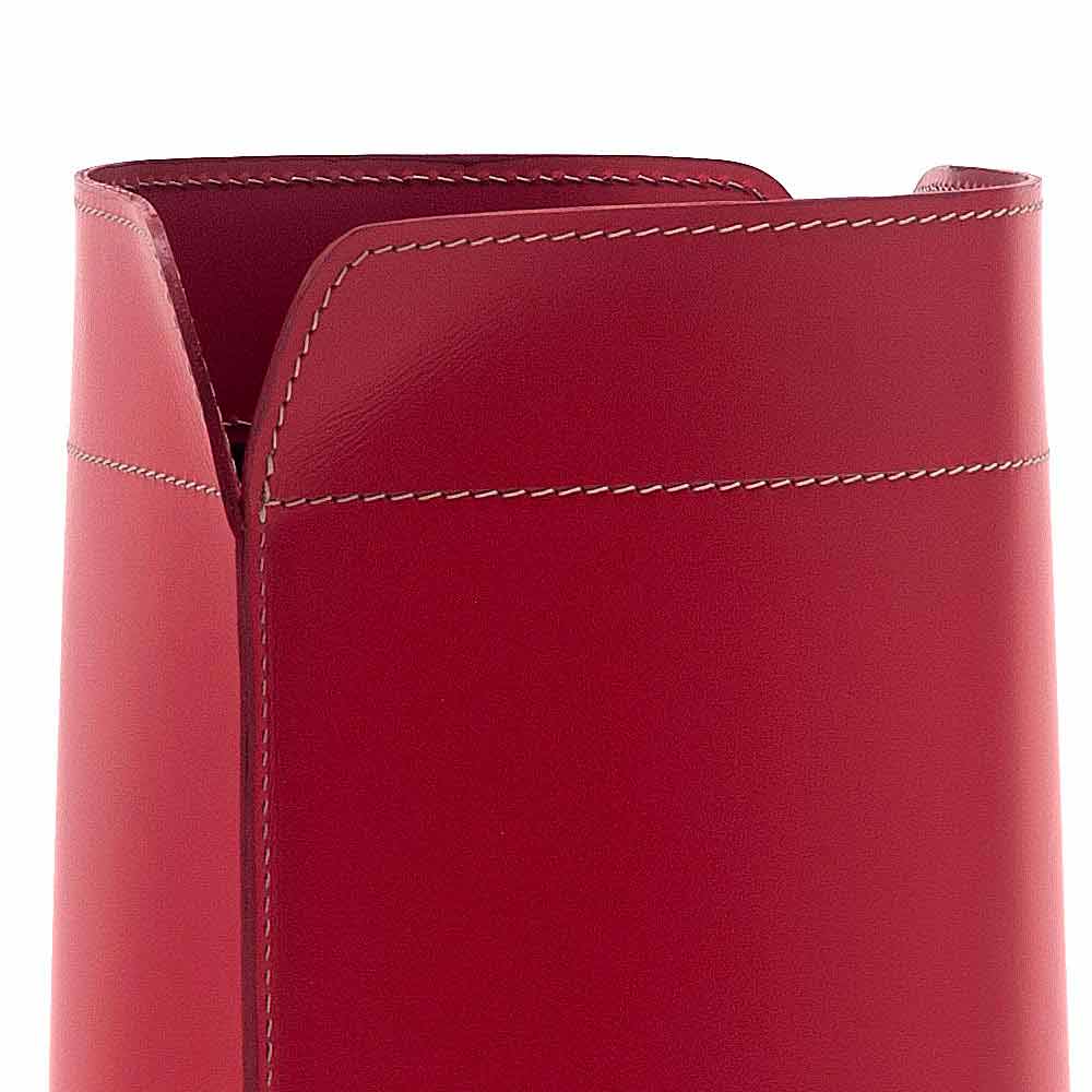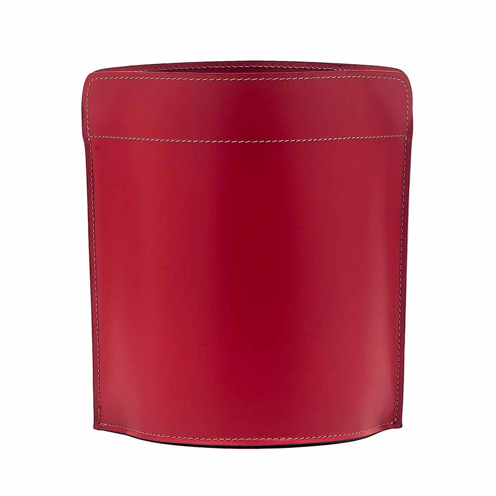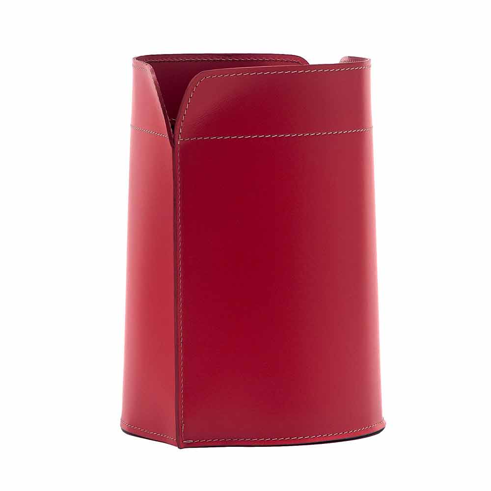 It is made of fine regenerated leather, available in different colors. The bottom is in plywood and is also covered in leather.