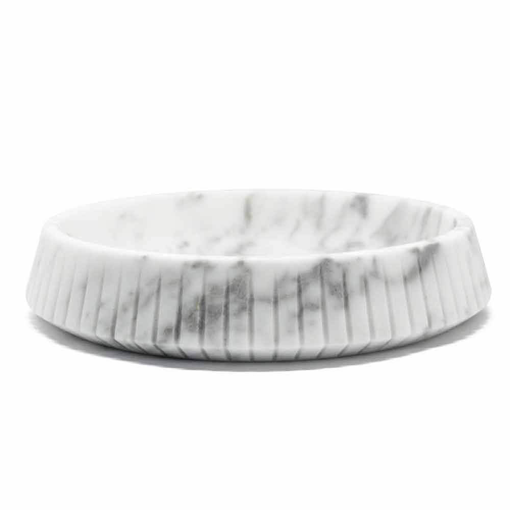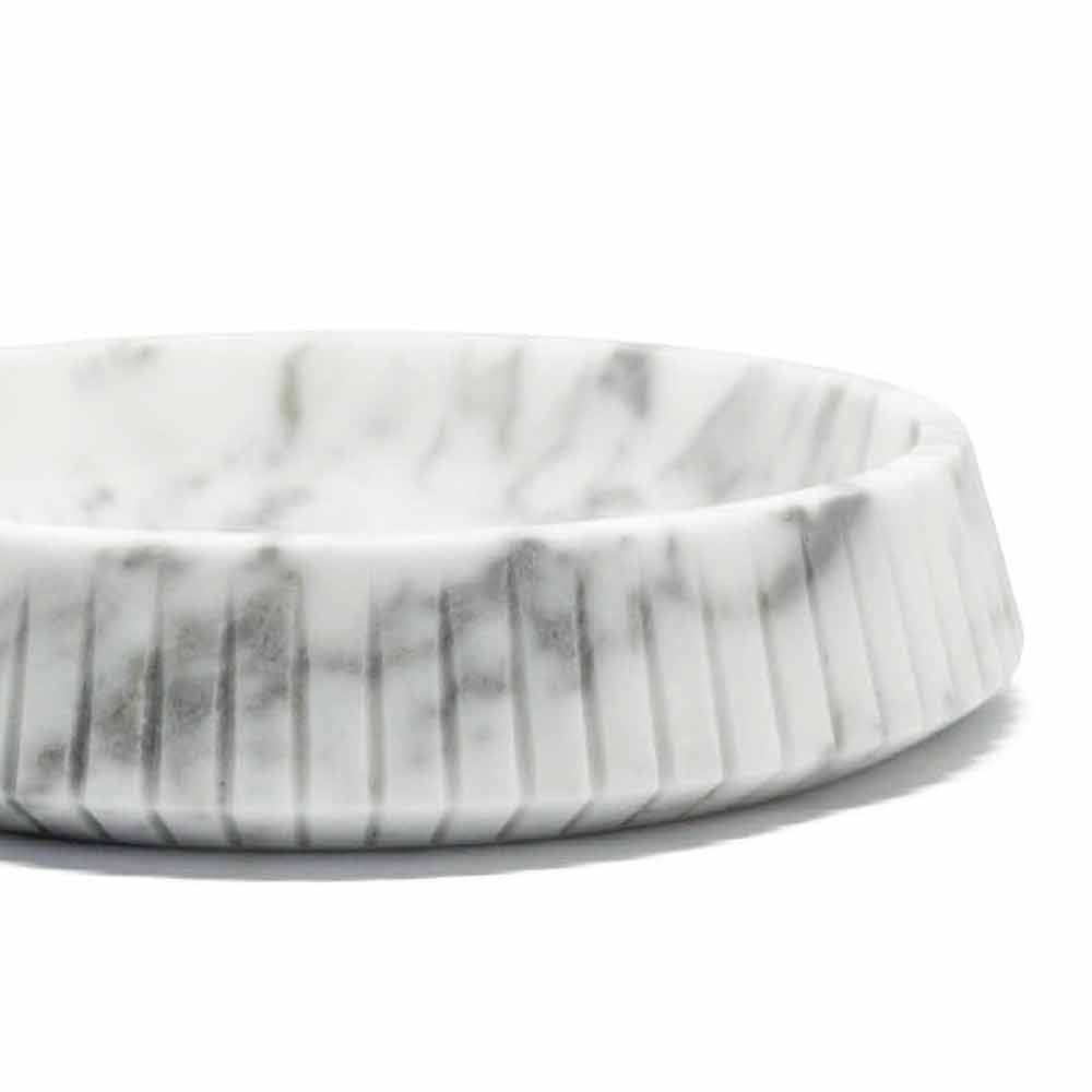 Round centerpiece made of quality Made in Italy white Carrara marble.