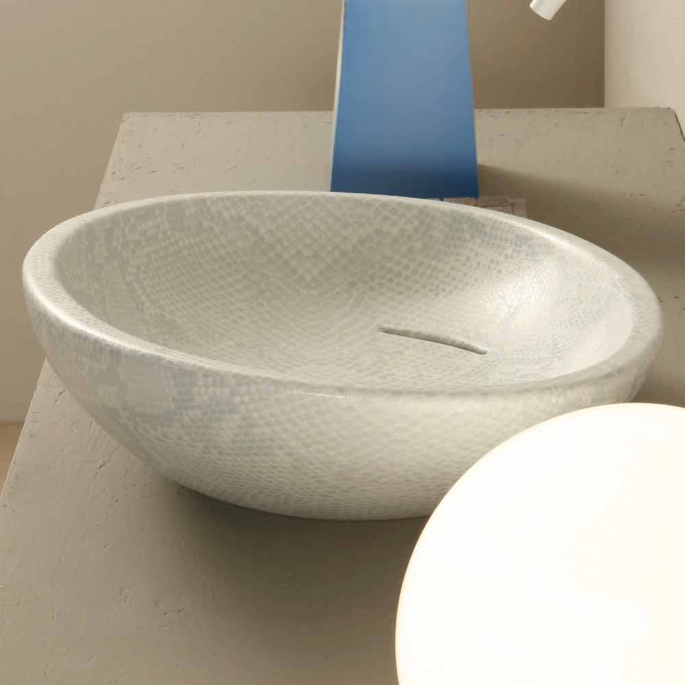 Design countertop washbasin in white python ceramic made in Italy Glossy