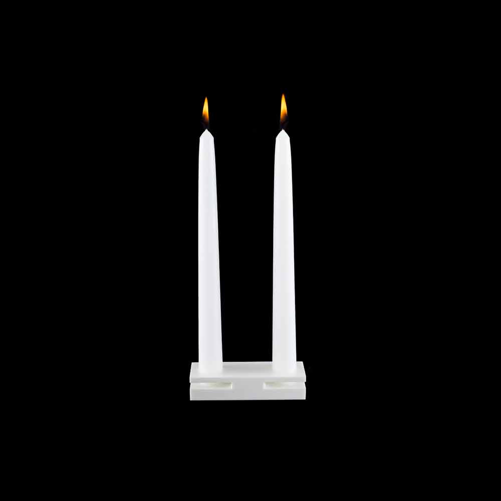 It is a candle holder base for a pair of stem lamps for an elegant and essential play of lights.