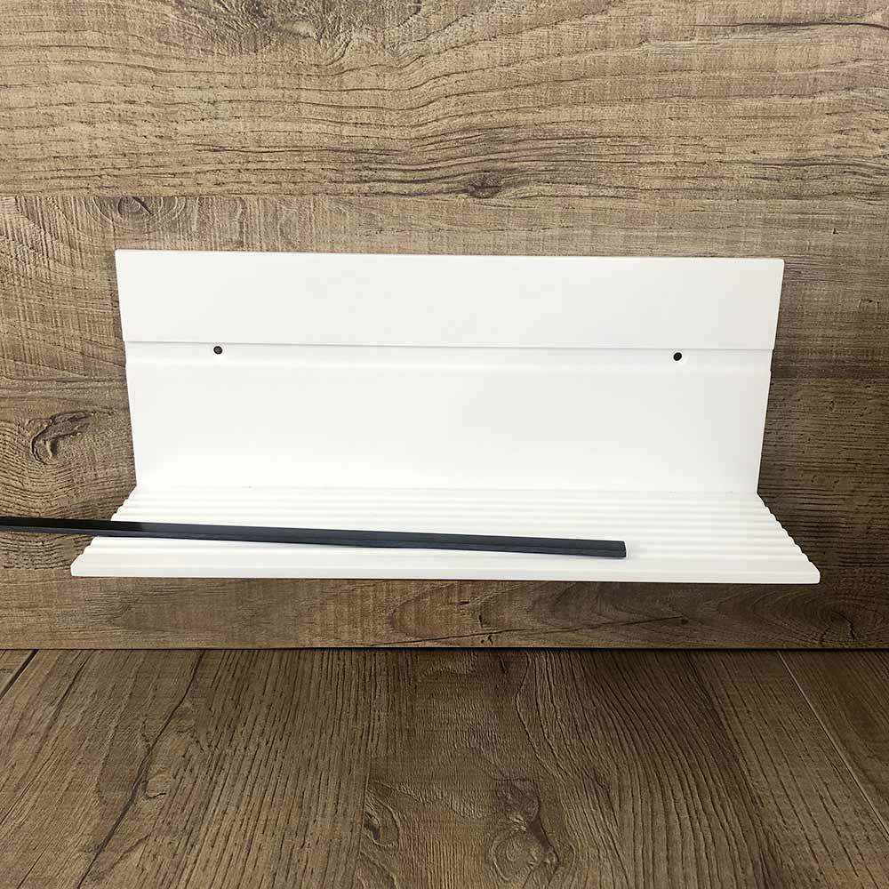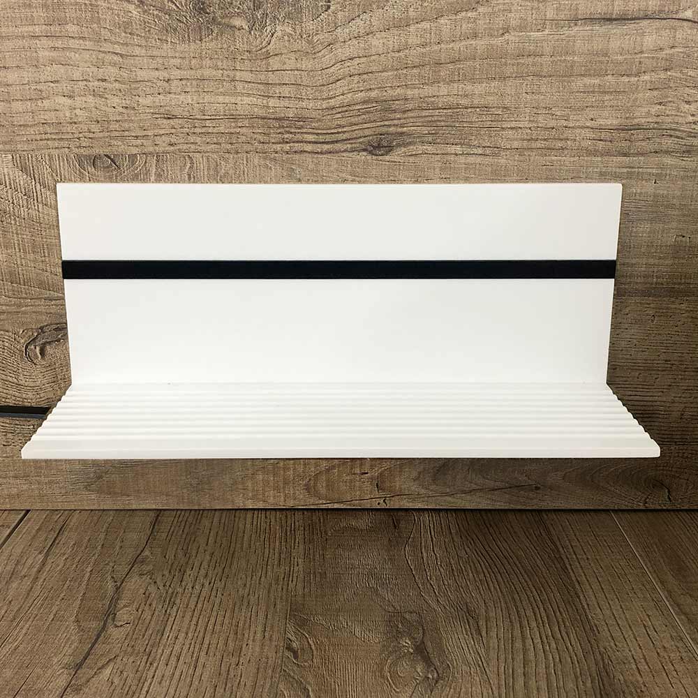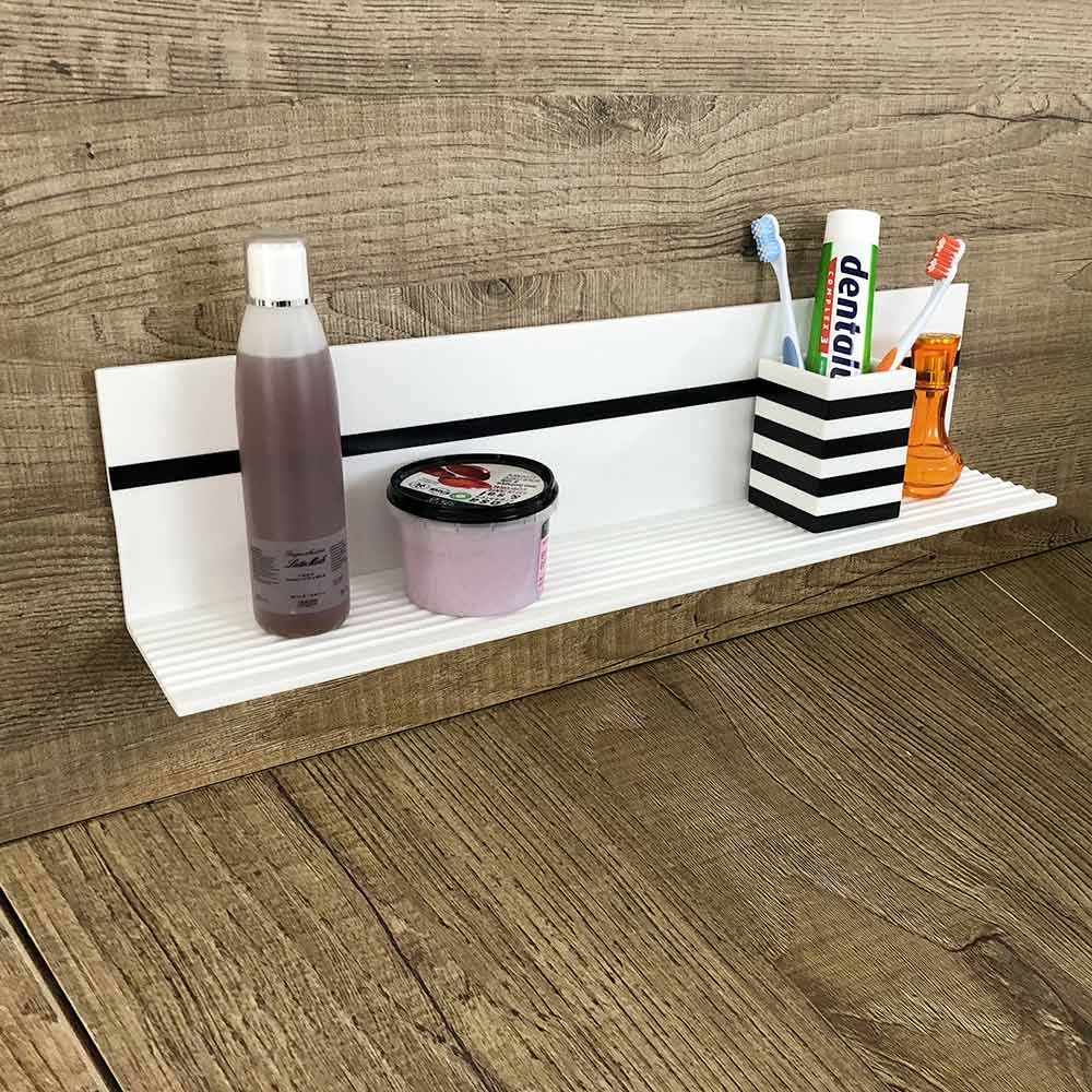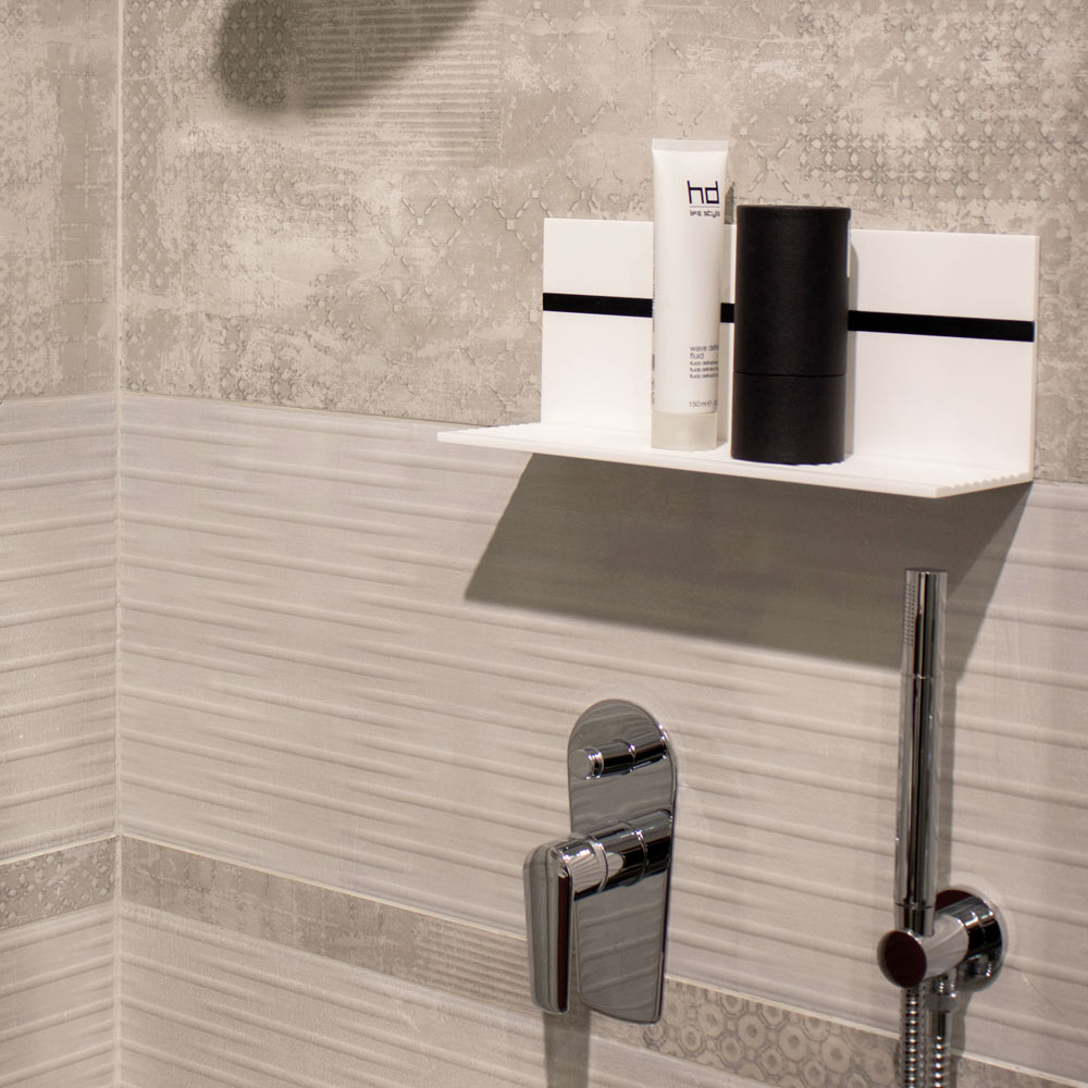 Bathroom or kitchen shelf in white corian or with black insert, made in Italy.