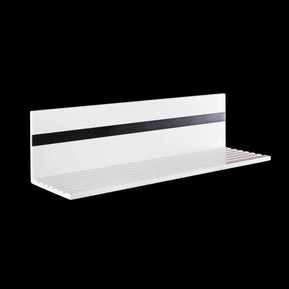 Choose the wall shelf for a modern and luxurious atmosphere entirely made of white or white Corian with black insert, a hygienic material with essential lines.