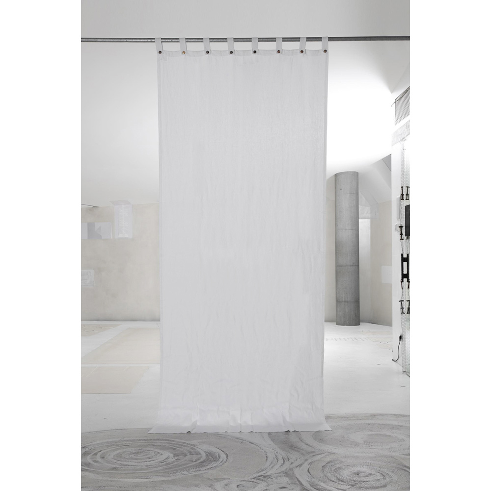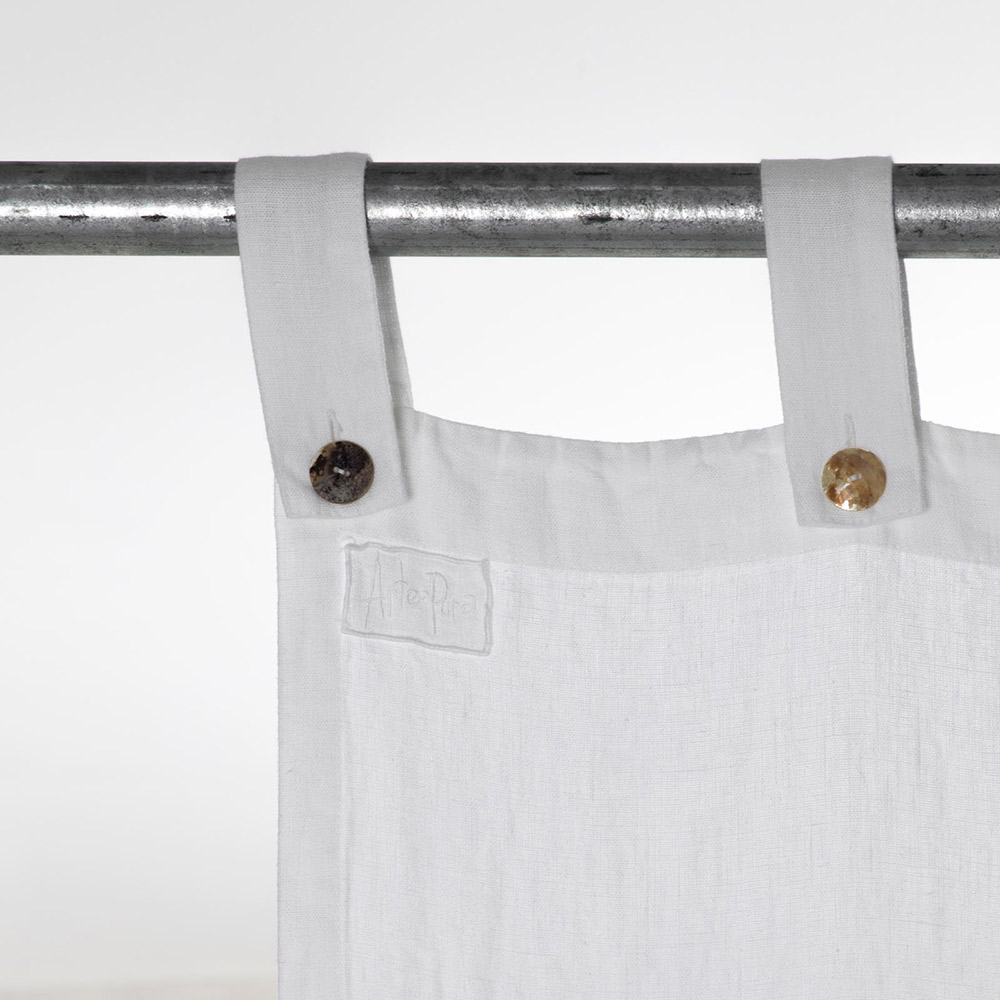 White heavy linen curtain with button fastening of elegant design, luxury made in Italy.