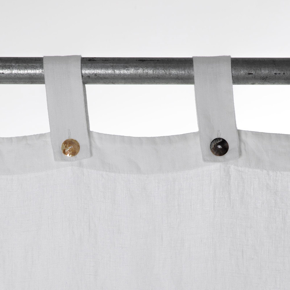 The value of tradition is combined with the modern lifestyle in this white heavy linen curtain with Agoya mother-of-pearl buttons.