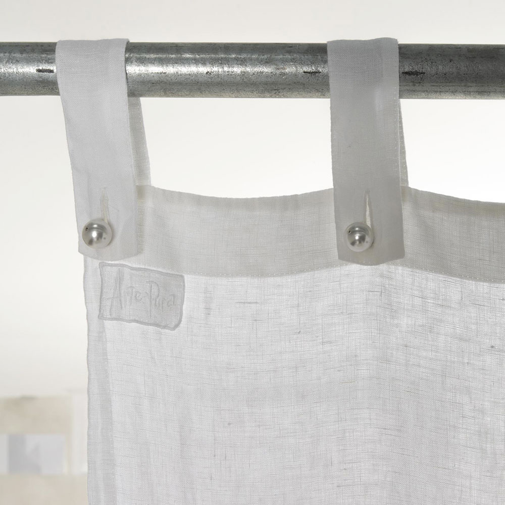 The value of tradition is combined with the modern lifestyle in this white light linen curtain with central lace of elegant decoration and lacing with Agoya mother-of-pearl buttons.