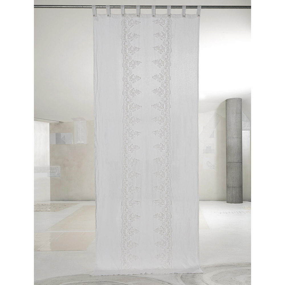 White and Light Linen Curtain with Central Lace, Elegant Design - Geogeo