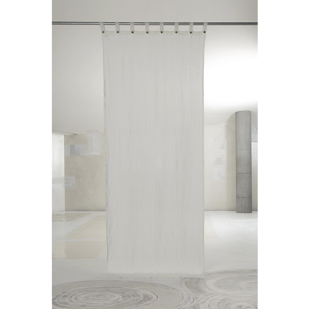 White heavy linen curtain with mother-of-pearl button fastening, handmade quality made in Italy.