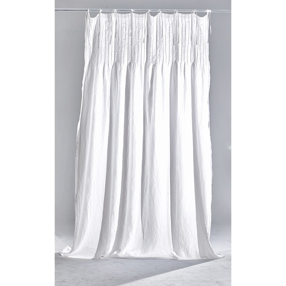 White curtain in light linen with ribs, luxury design and high quality made in Italy.