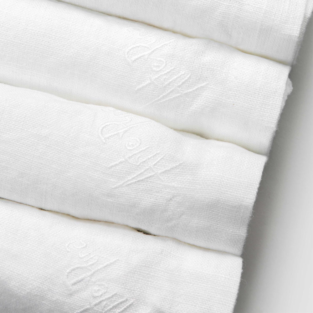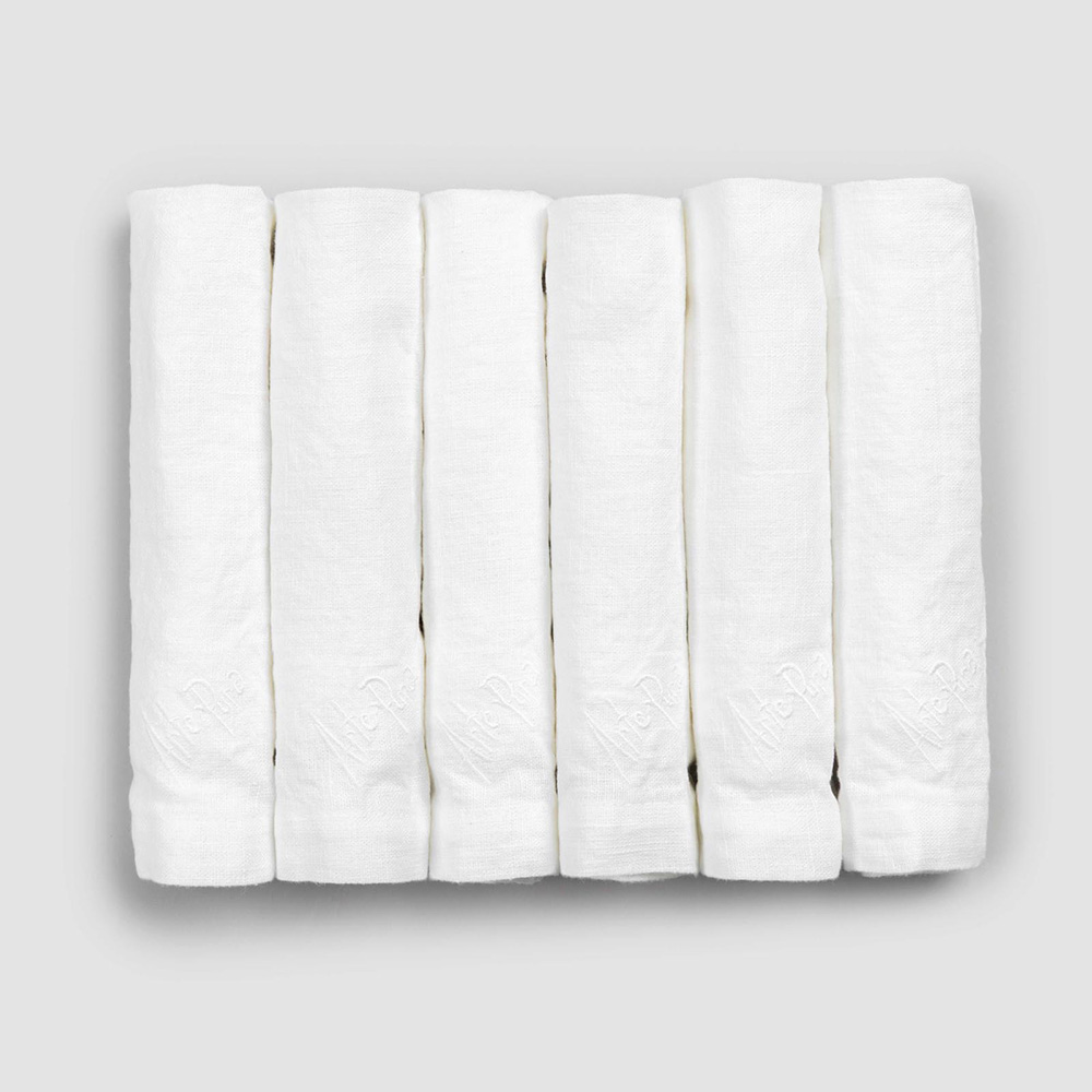 The value of tradition is combined with the modern lifestyle in this service of 6 heavy white linen napkins with fold edge.