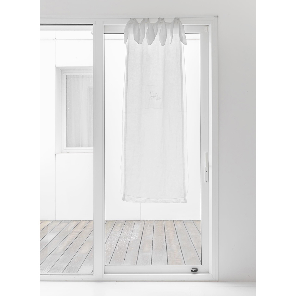 White curtain in linen and organza, lacing with laces, elegant design made in Italy.