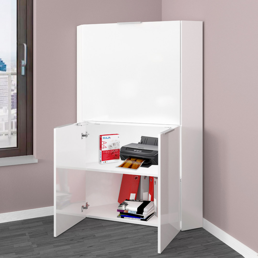 White Modern Corner Desk in Polished Wood Italian Design - Ghero